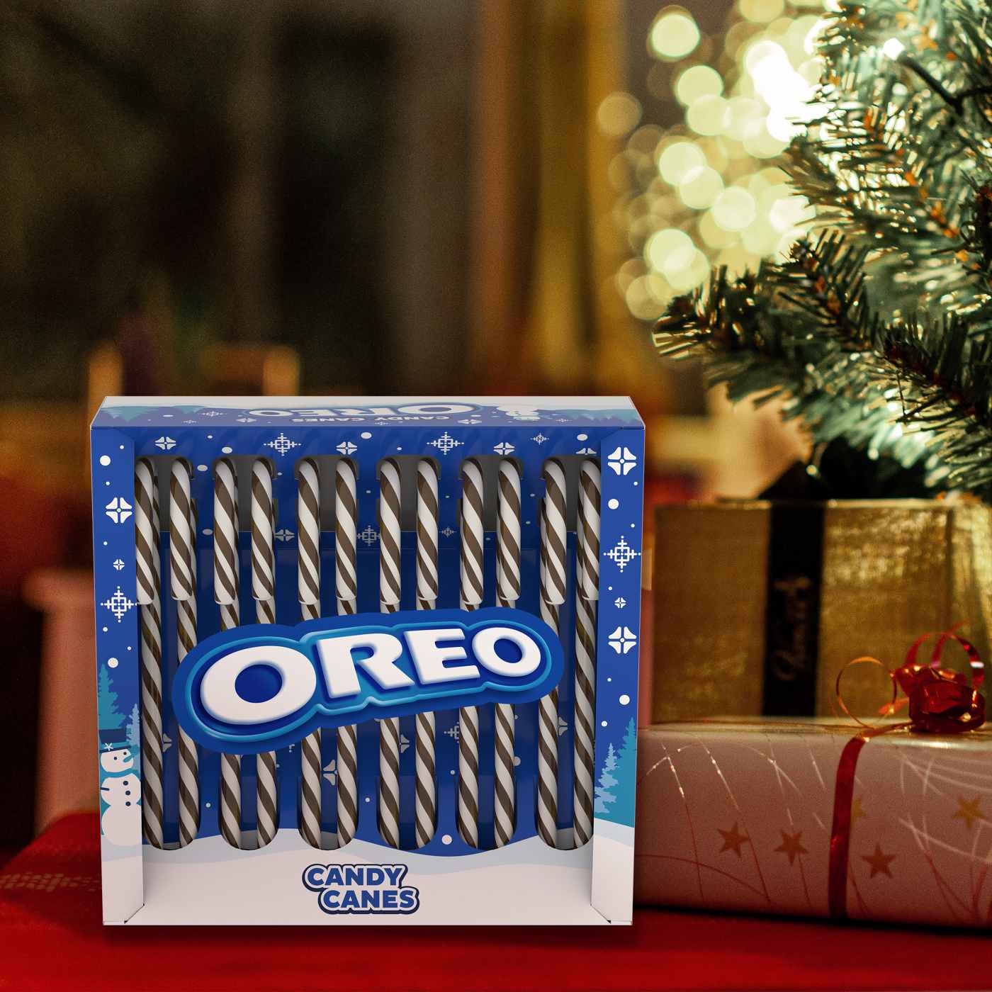 Spread holiday cheer with OREO Candy Canes. A new way to enjoy the timeless flavors of OREO chocolate sandwich cookies, this festive candy cane features the classic chocolate wafers and rich creme filling in flavored stripes for a sweet treat to satisfy your taste buds. These OREO holiday candies make great stocking stuffers, grab bag gifts, classroom party favors, and holiday game prizes. They're perfect for tossing in lunchboxes, backpacks, and Christmas candy bags, as well as for attaching to holiday gifts. Each box contains 12 individually wrapped OREO candy canes.