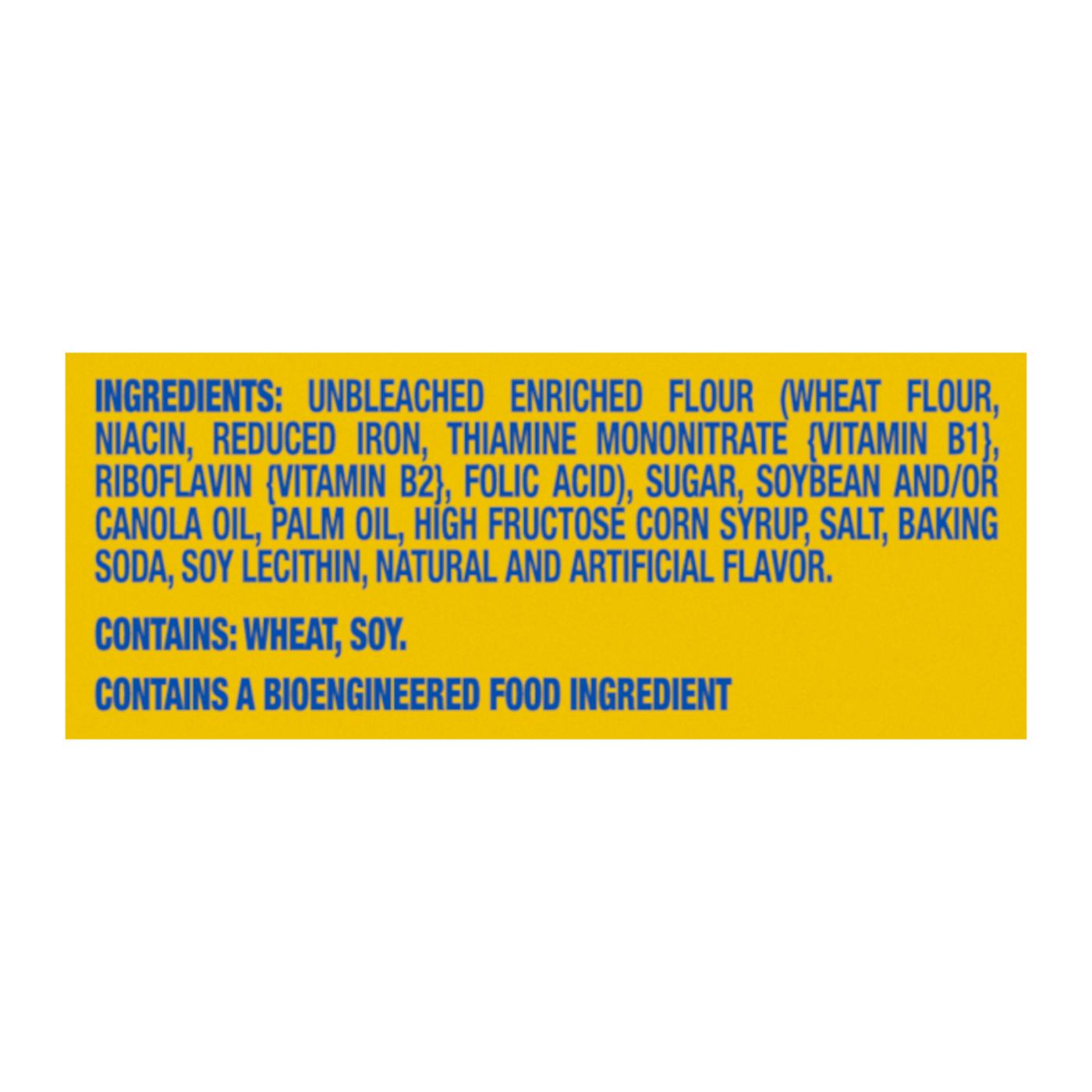 Unbleached Enriched Flour (Wheat Flour, Niacin, Reduced Iron, Thiamine Mononitrate [Vitamin B1], Riboflavin [Vitamin B2], Folic Acid), Sugar, Soybean And/Or Canola Oil, Palm Oil, High Fructose Corn Syrup, Salt, Baking Soda, Soy Lecithin, Natural And Artificial Flavor. Contains: Wheat, Soy.Allergens and safety warnings