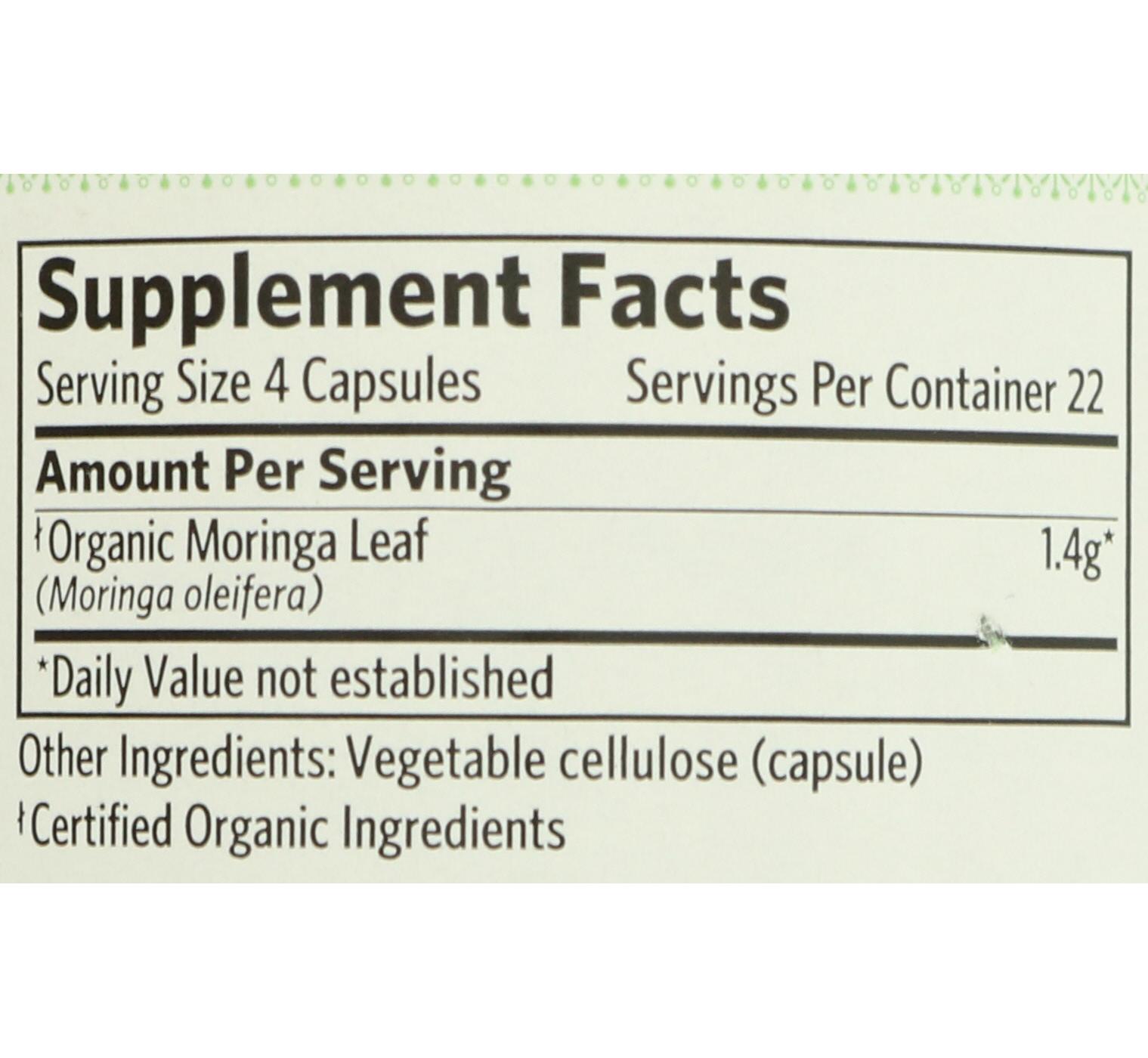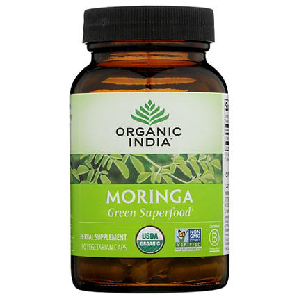 Herbal Supplement. USDA Organic. Vegan. Gluten free. Halal. Product processed as per COS standard & Certified Organic by Aditi Organic Certifications Pvt. Ltd. Vegetarian. Non GMO Project verified. nongmoproject.org. Green superfood. Love & Consciousness in Action: Whole herb solutions for healthy conscious living, grown sustainably by small family farmers using regenerative organic agriculture. Moringa is considered one of the most complete, nutrient-dense plants on earth. Sealed for your protection. OrganicIndiaUSA.com. Certified B Corporation. (This statement has not been evaluated by the FDA. This product is not intended to diagnose, treat, cure or prevent any disease.) Product of India.