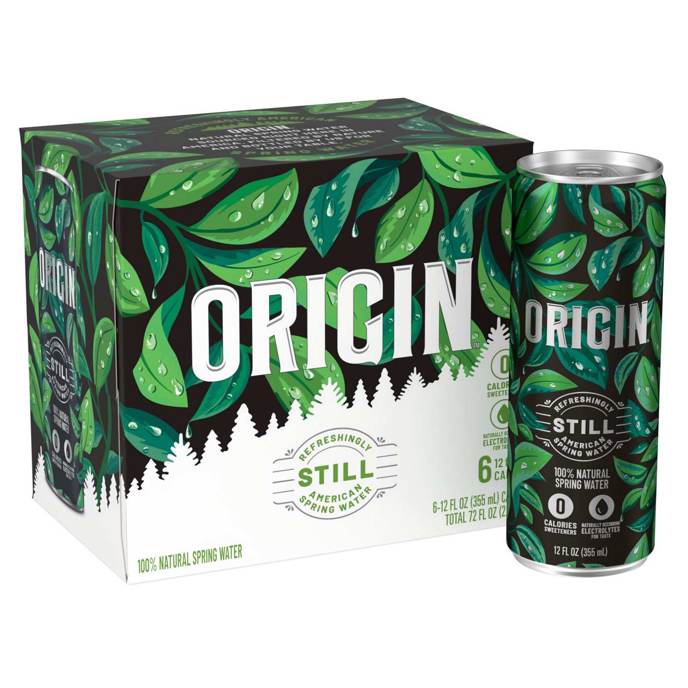 ORIGIN is not your average bottled water. We were born here. ORIGIN is 100% Natural Spring Water, sourced in America, with naturally occurring electrolytes for a crisp, refreshing taste. We share the deeply held values of the land we come from and in our American origins. From the thought we put into our recycled packaging to the care we put into helping conserve our springs, we are devoted to bringing you spring water inspired by nature, in premium packaging, providing an exceptional drinking experience for any occasion. Our 12-ounce aluminum can is perfect for easy grab and go hydration. Elevate your hydration experience with ORIGIN.• 6 PACK 100% NATURAL SPRING WATER: 12oz sleek cans• PERFECTLY BALANCED WITH NATURALLY OCCURRING ELECTROLYTES: For a crisp, refreshing taste that elevates any occasion• EXCEPTIONAL, REFRESHING, AND PREMIUM EXPERIENCE• REFRESHINGLY AMERICAN NATURAL SPRING WATER: Sourced, bottled, and delivered in the United States• PREMIUM: Every detail - from the design of the can, to the care we put into conserving our springs, is to deliver the quality spring water in premium packaging