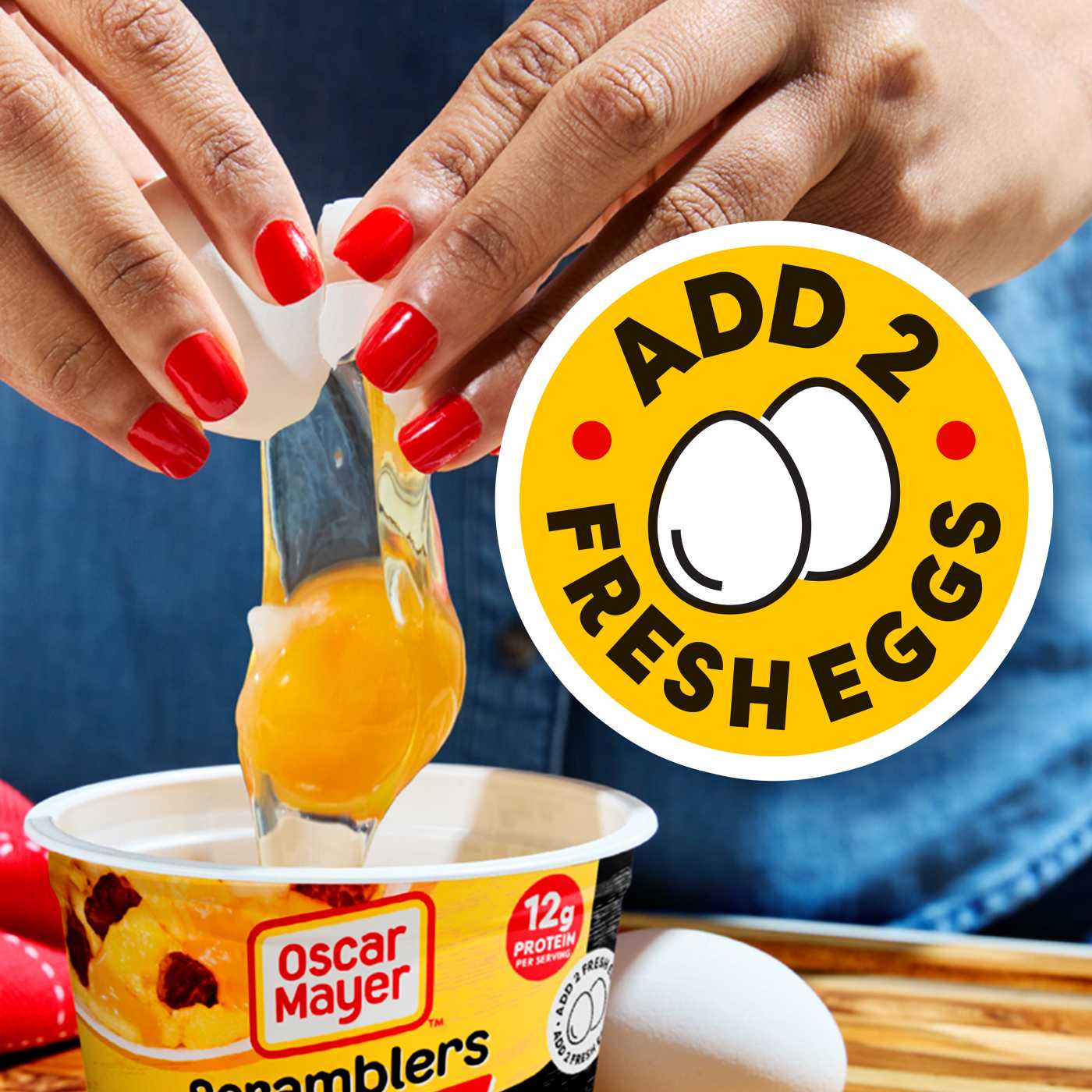 Scramble your morning with Oscar Mayer Scramblers Ham & Colby Jack Scramble Kit. This Oscar Mayer Scramblers contains smoked ham, marbled Colby and Monterey Jack cheese, and potatoes and is ready in less than two minutes. Simply add two fresh eggs, stir the ingredients and microwave for a delicious microwave breakfast solution on the go or at home. This Scramble Kit is an excellent source of protein with 12 grams of protein per serving. Keep this single serve, 3-ounce Oscar Mayer breakfast solution cups refrigerated until you're ready to prepare.