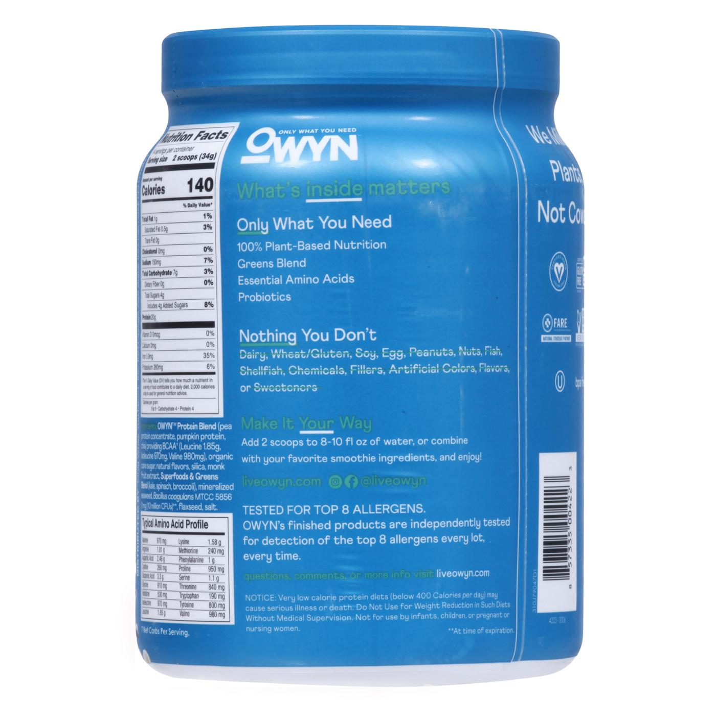 OWYN 100% Vegan Plant-Based allergen-friendly Protein Powder is a premium multi-source protein blend with 20g of protein per serving. Combined with probiotics and a superfoods greens blend for added nutritional benefits.
