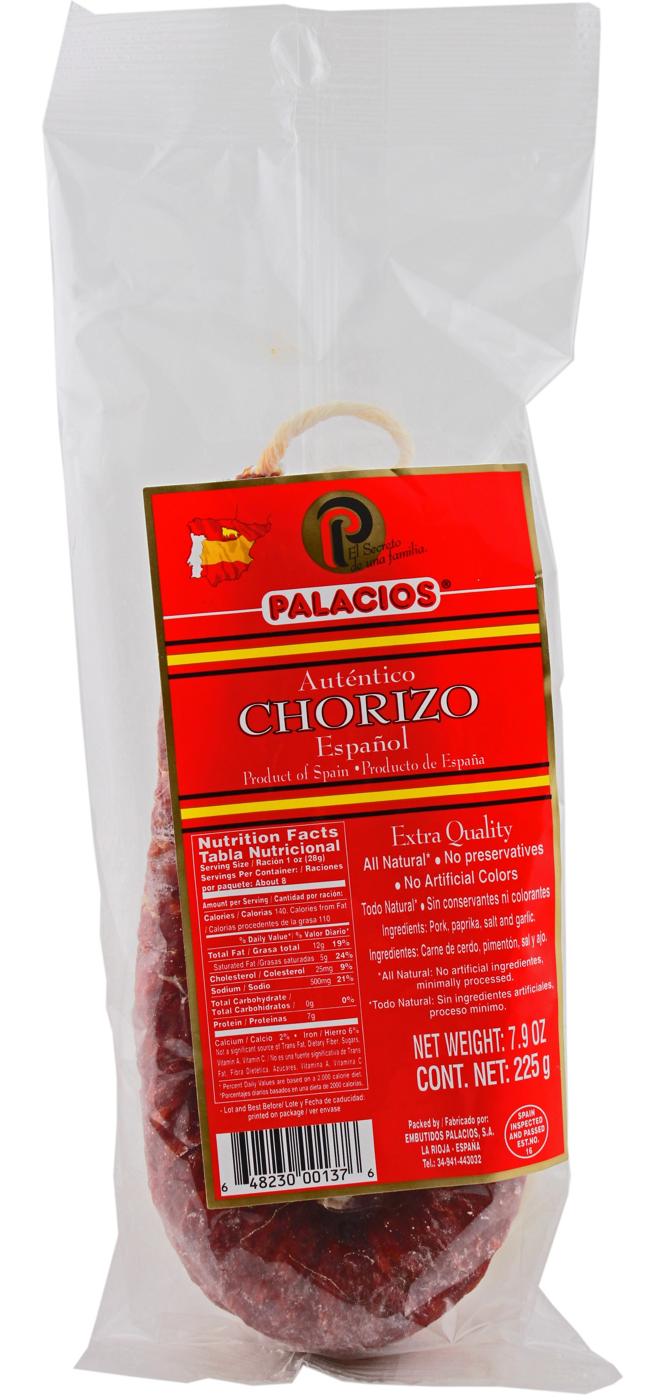 When you taste chorizo for the first time you understand why it is a national obsession in Spain. All natural, dry-cured, Palacios chorizos come ready to slice and and enjoy with your favorite cheese or a fine Spanish wine. Make an omelet, rice dish or stew extraordinary. The robust flavor and smoky-edge of chorizo gives a distinctive, Spanish flavor to whatever you prepare. Palacios chorizos are cured with smoked paprika, salt and garlic, with NO NITRATES OR NITRITES added to the recipe.