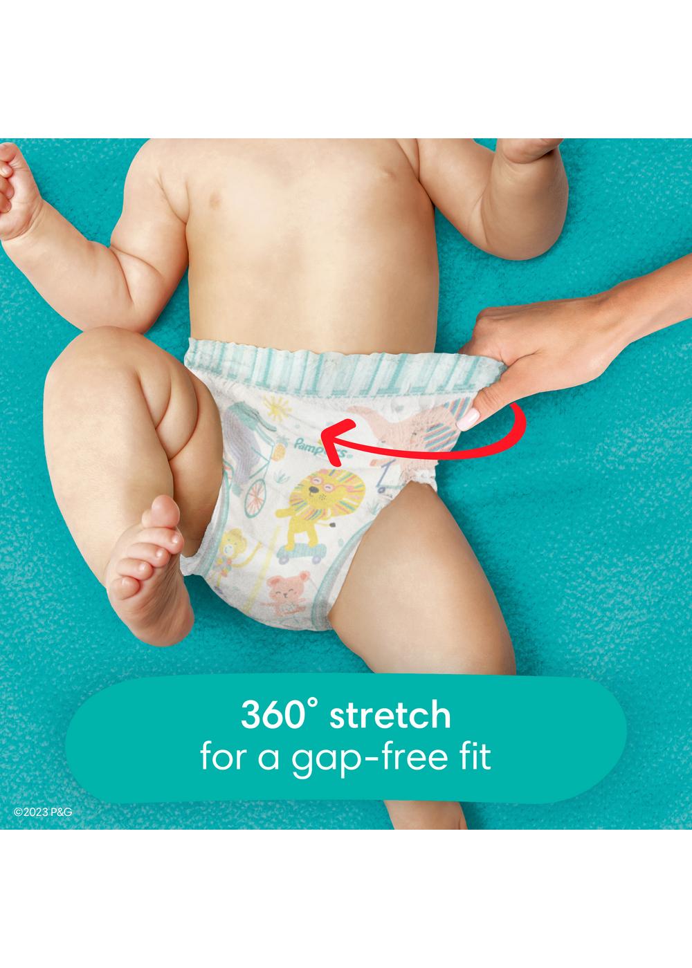 Pampers Cruisers 360 diapers are our best fit and protection for your active baby. Unlike ordinary disposable diapers that gap in the back, Pampers Cruisers 360 diapers stretch comfortably around your baby's waist and adapt to their every move for a flexible, gap-free fit that is up to 100% leakproof. Plus, they feature our Dual Leak-Guard Barriers that gently seal around your baby's legs, where leaks happen most. And forget fiddling with ordinary diaper tapes! Pampers Cruisers 360 has a 360-degree stretchy waistband designed to quickly and easily pull up onto your wiggly baby. And when a diaper change is complete, we've made disposal simple. All you need to do is RIP the Easy-Tear Sides and ROLL the diaper, then secure it with the disposal tape that comes attached to the back. Simple as that. Also, to keep your baby's delicate skin healthy, Pampers Cruisers 360 delivers breathable dryness, pulling out wetness and locking it away from skin using our exclusive LockAway Channels. Plus, Cruisers 360 is hypoallergenic-completely free of elemental chlorine bleaching, parabens and latex (natural rubber). For protection that will keep your little one happy and comfy on-the-go, trust Pampers, the #1 pediatrician recommended brand.