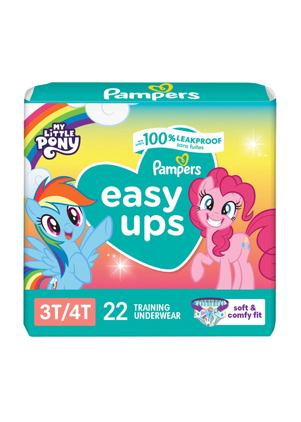 Make potty-training easy and fun with Pampers Easy Ups Potty Training Underwear for Girls and Boys! Featuring your favorite characters - Bluey and Peppa Pig - these super soft, comfortable, and breathable training pants fit just like real cotton underwear giving your toddler the confidence to feel like they have transitioned out of diapers! With a 360 stretchy waistband that is gentle on your child's skin, Easy Ups make it easy for your toddler to pull up and down their training pants independently. For easy changing, Easy Ups feature easy tear sides for mess-free convenience, even on the go! When it comes to potty training accidents, your toddler will be covered with up to 100% leakproof protection Day OR Night. To protect where leaks happen most, Easy Ups are made with Dual Leak-Guard Barriers around the leg cuffs and Extra Absorb Channels for all around coverage to absorb accidents and lock them away from your toddler's skin. Plus, they're dermatologically tested, hypoallergenic, and free of parabens and latex.* That's just one of the many reasons Pampers is the #1 pediatrician recommended brand. Available in sizes 2T-3T (16-34 lb), 3T-4T (30-40 lb), 4T-5T (37+ lb) and 5T- 6T (41+ lb). *No natural Rubber