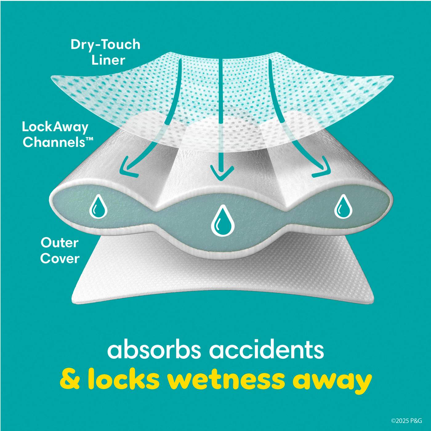Any parent knows that potty training isn't always easy, but when toddlers lead, it's a little easier for everyone. ​​Make potty training magical with Pampers Easy Ups training underwear for girls and boys-and their favorite ponies, like Rainbow Dash and Pinkie Pie. These super soft and comfy training pants fit like real cotton undies with a 360 Stretchy Waistband that is gentle on your toddler's skin and easy to pull up and down. They're dermatologically tested, hypoallergenic, and free of parabens and latex (natural rubber). ​When potty accidents happen, your toddler will be covered with up to 100% leakproof protection, day and night. To protect where leaks happen most, Pampers Easy Ups potty training underwear is made with Dual Leak-Guard Barriers around the leg cuffs, and Lock Away Channels that quickly work to absorb accidents and lock them away from your toddler's skin. And when it's time to take them off, Easy-Tear Sides make removal and disposal a cinch. Available in sizes 2T-3T (16-34 lb), 3T-4T (30-40 lb), 4T-5T (37+ lb) and 5T- 6T (41+ lb).