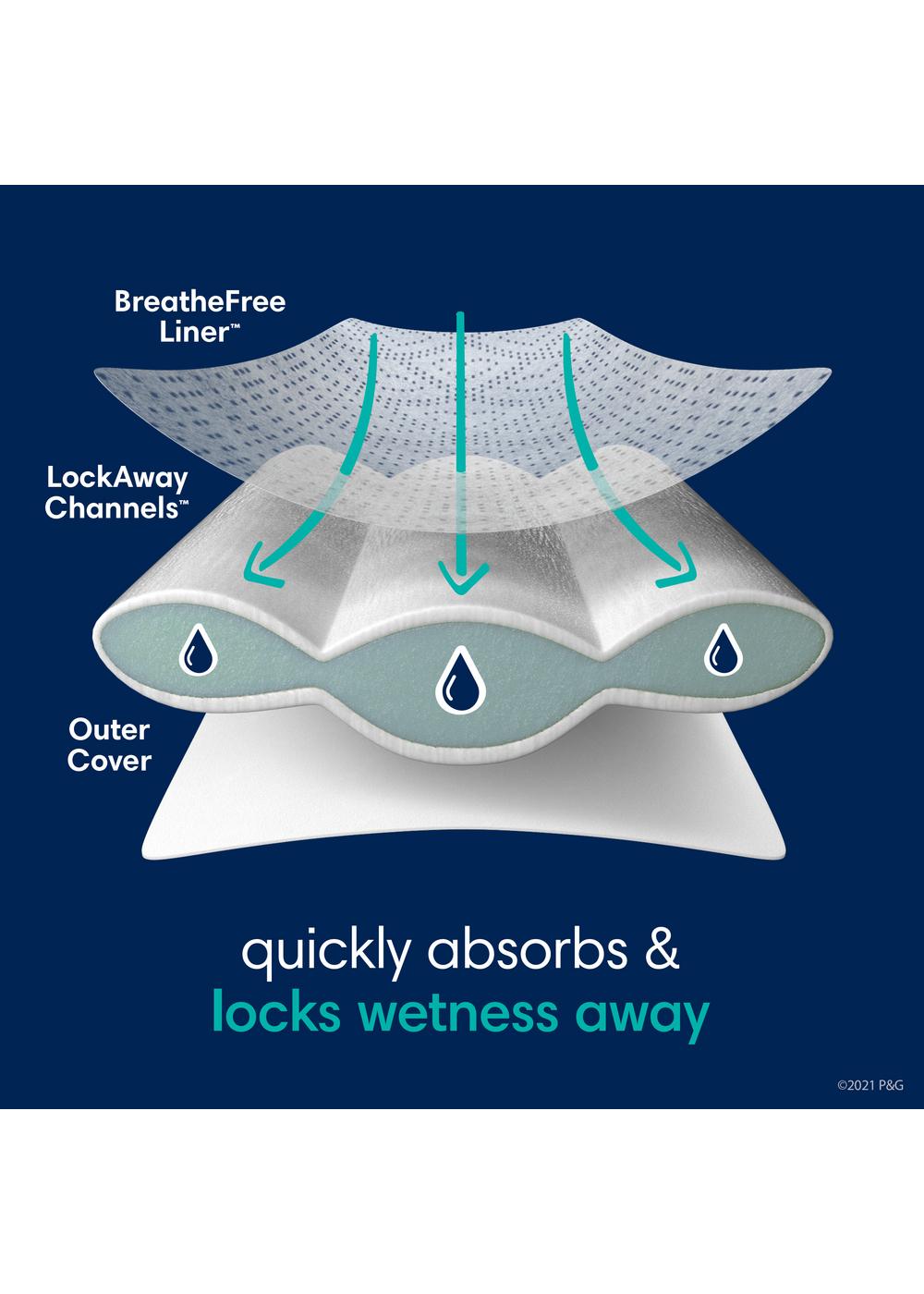 Featuring an All-Around LeakGuard, this baby diaper offers up to 100% blowout and leak protection. These disposable diapers are also made with a Blowout Barrier to help stop leaks even up the back. Plus, gentle protection at the legs to stop leaks from every angle. Pampers ZZZ disposable nighttime diapers are hypoallergenic and free of elemental chlorine, parabens, or latex (no natural rubber). Pampers ZZZ baby diapers are trusted by parents and experts alike and were named the Best Overall Overnight Diaper in 2024 by What to Expect. For trusted protection trust Pampers, the #1 Pediatrician Recommended Brand ***.