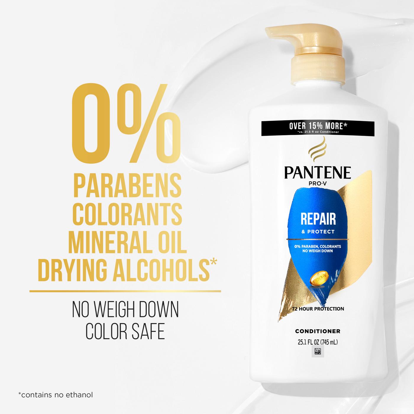 HARD WORKING, LONG LASTINGYour haircare should work as hard as you do. Repair damaged hair with Pantene PRO-V Repair & Protect Conditioner, which visibly transforms damaged hair back to healthy looking hair and protects each strand from future damage. This moisturizing conditioner contains 2x more nutrients with no parabens or colorants for nourishment in every wash, so you can wash less and keep the hydrated feel and protection for 72+ hours. This formula is safe for colored hair and crafted with protective anti-oxidants, strengthening lipids, and pH balancers that won't weigh your hair down, leaving you with strong and healthy strands. With Pantene Pro-V Repair & Protect Conditioner, say goodbye to damaged strands and unleash soft, hydrated hair that looks and feels beautiful for longer.2X MORE NUTRIENTS, LASTS FOR 72+ HOURSThis Pantene PRO-V Repair & Protect Conditioner is designed to be used with other products for damaged hair, like our complete Repair & Protect Collection that infuses your hair with optimal hydration and 2x more nutrients. These powerful Repair & Protect formulas work together to permeate every strand, fighting damage where it starts and deeply nourishing hair from the inside out for protection that lasts 72+ hours without washing. These formulas are crafted with Pro-V nutrients, Pro-Vitamin B5, and pH balancers, and made without parabens or colorants.