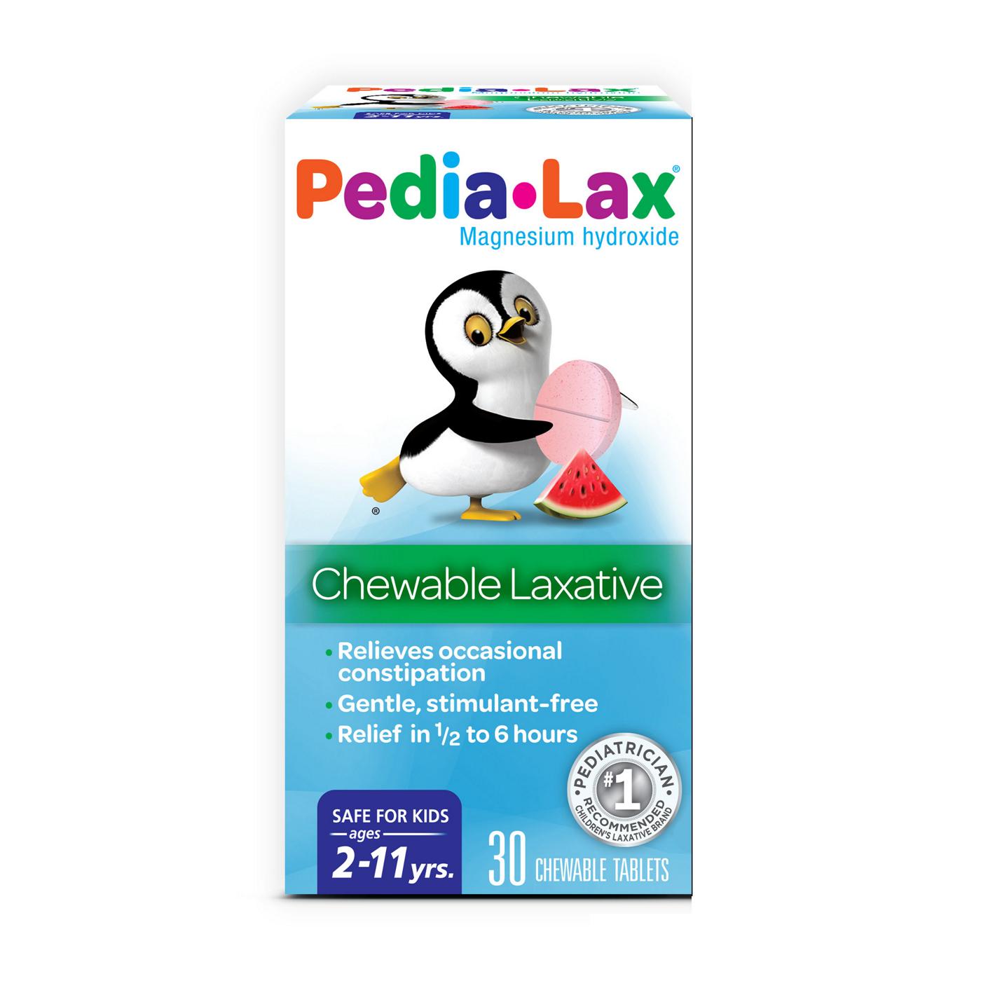 Poop should just happen. When it doesn't, there's Pedia-Lax. Formulated for kids ages 2-11, Pedia-Lax Laxative Chewable Tablets help to provide relief from occasional constipation in 30 minutes to 6 hours. The tasty watermelon flavored chewable tablets contain magnesium hydroxide, a saline laxative that offers gentle, stimulant-free relief. See package for full instructions and dosage information. Pedia-Lax is the Number One pediatrician-recommended children's laxative brand (1). Unlike adult laxatives, Pedia-Lax Laxative Chewable Tablets are formulated for kids and are a safe solution for kids' occasional constipation. Parents keep kids growing and Pedia-Lax helps keep kids going. (1) IQVIA, using the ProVoice Survey October 1, 2019 to October 31, 2019. Pedia-Lax products are FSA- and HSA-eligible in the U.S.