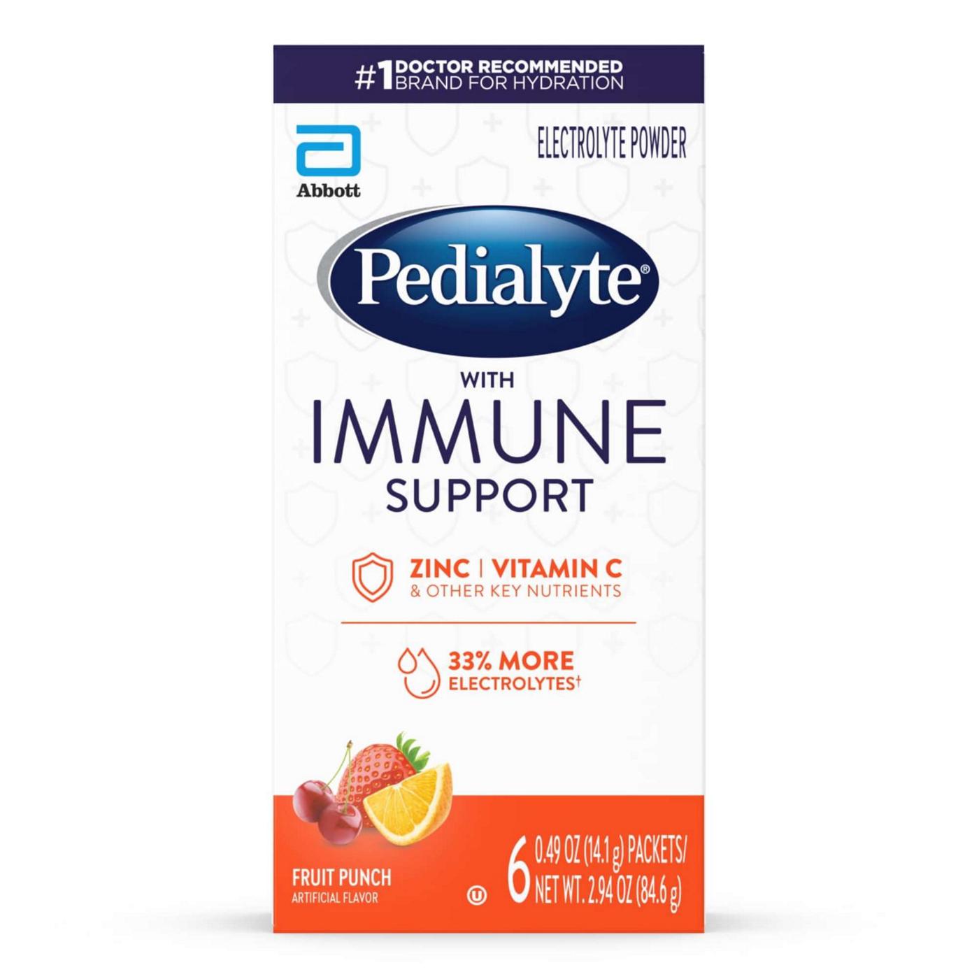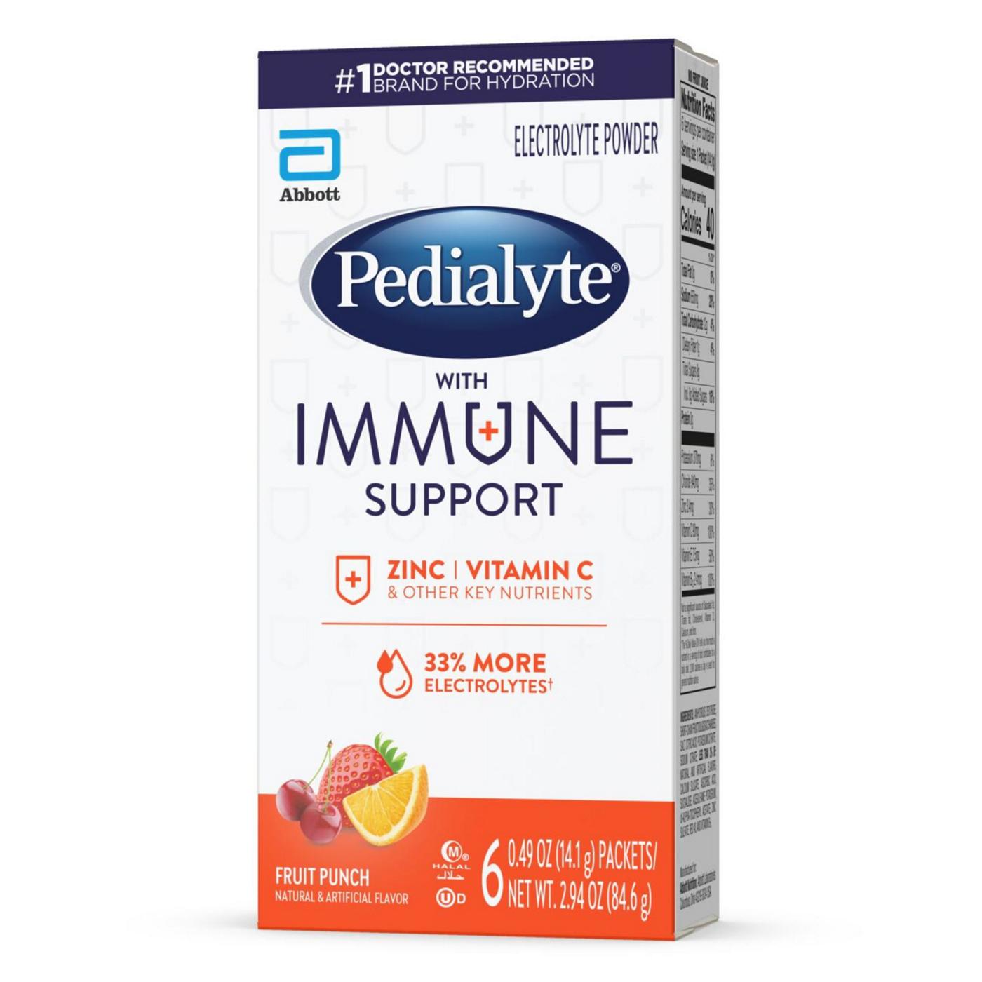 NEW! Pedialyte with Immune Support is advanced hydration with 4 key nutrients to support your immune system: zinc to help build new immune cells, vitamin C to promote cell health, vitamin B12 to activate immune cells, and vitamin E to support cell membranes.