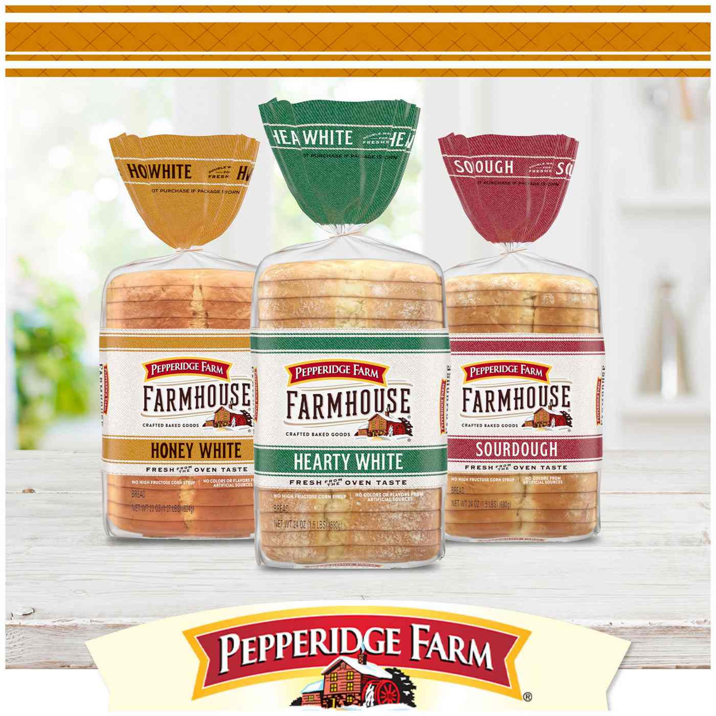 Pepperidge Farm Honey White Bread is baked with deliberate, thoughtful care. Each slice of Farmhouse Honey White Bread features an authentic baker's touch. These delicious slices of sandwich bread are soft, yet strong enough to stand up to any sandwich ingredient. There’s no taste like home.HONEY WHITE BREAD: Bread crafted with honey for a touch of sweetnessBAKER'S TOUCHES: The classic recipe you know and love, featuring thick slices and soft textureQUALITY INGREDIENTS: No high-fructose corn syrup and no colors or flavors from artificial sourcesCRAFTED WITH CARE: Each Farmhouse loaf of bread is crafted for the best flavorTHERE'S NO TASTE LIKE HOME: Pepperidge Farm Farmhouse bread adds the comfort of homemade goodness in every slice