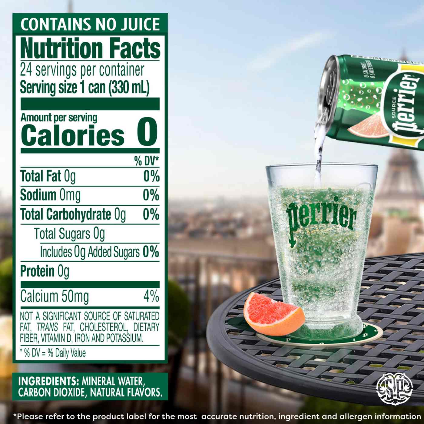 Perrier Sparkling Natural Mineral Grapefruit Water 11.15 oz Cans