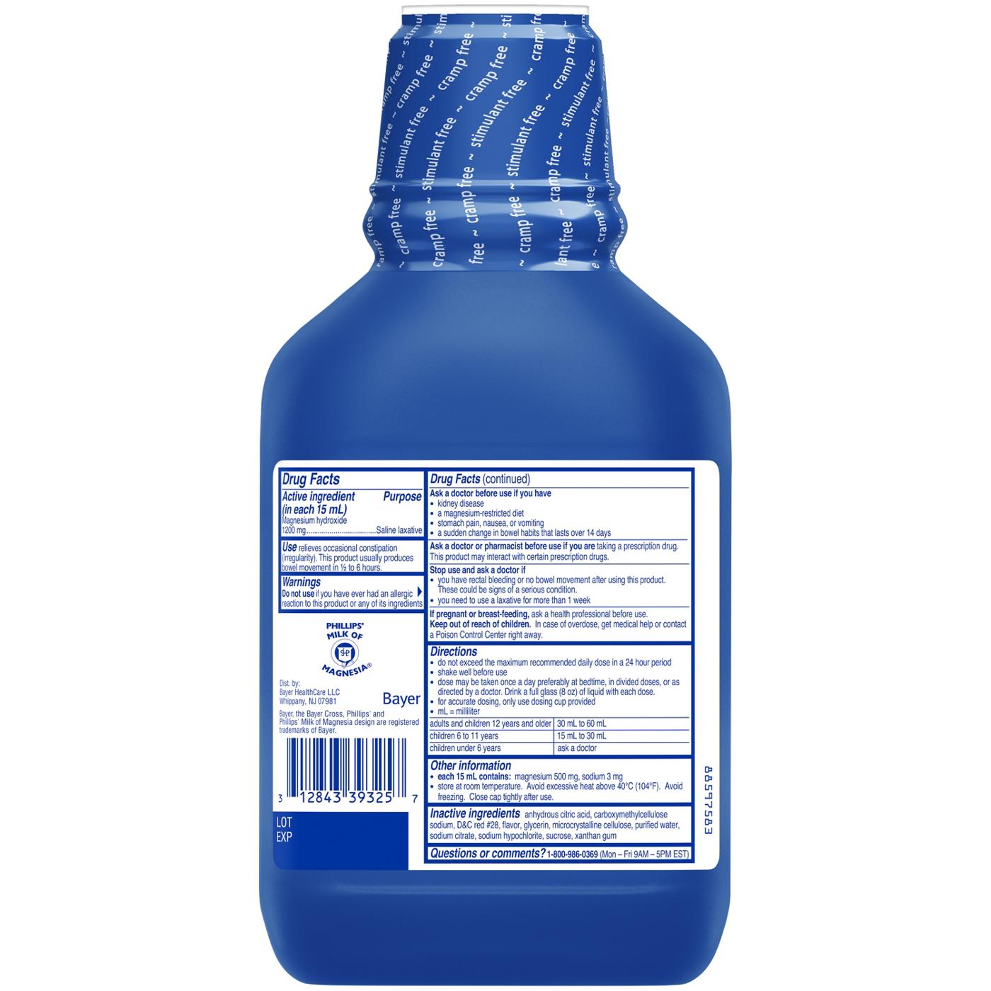 Phillips' Milk of Magnesia provides overnight relief of occasional constipation and helps you get back to regular. It contains magnesium, which works with your body's natural process to relieve occasional constipation. You get cramp-free, gentle relief without harsh stimulants.