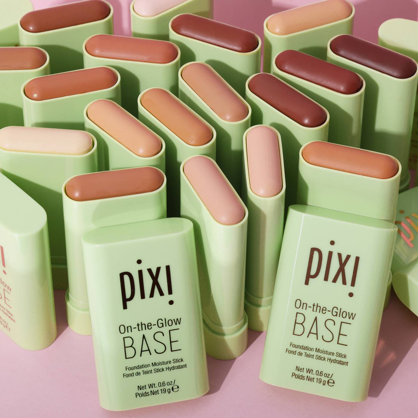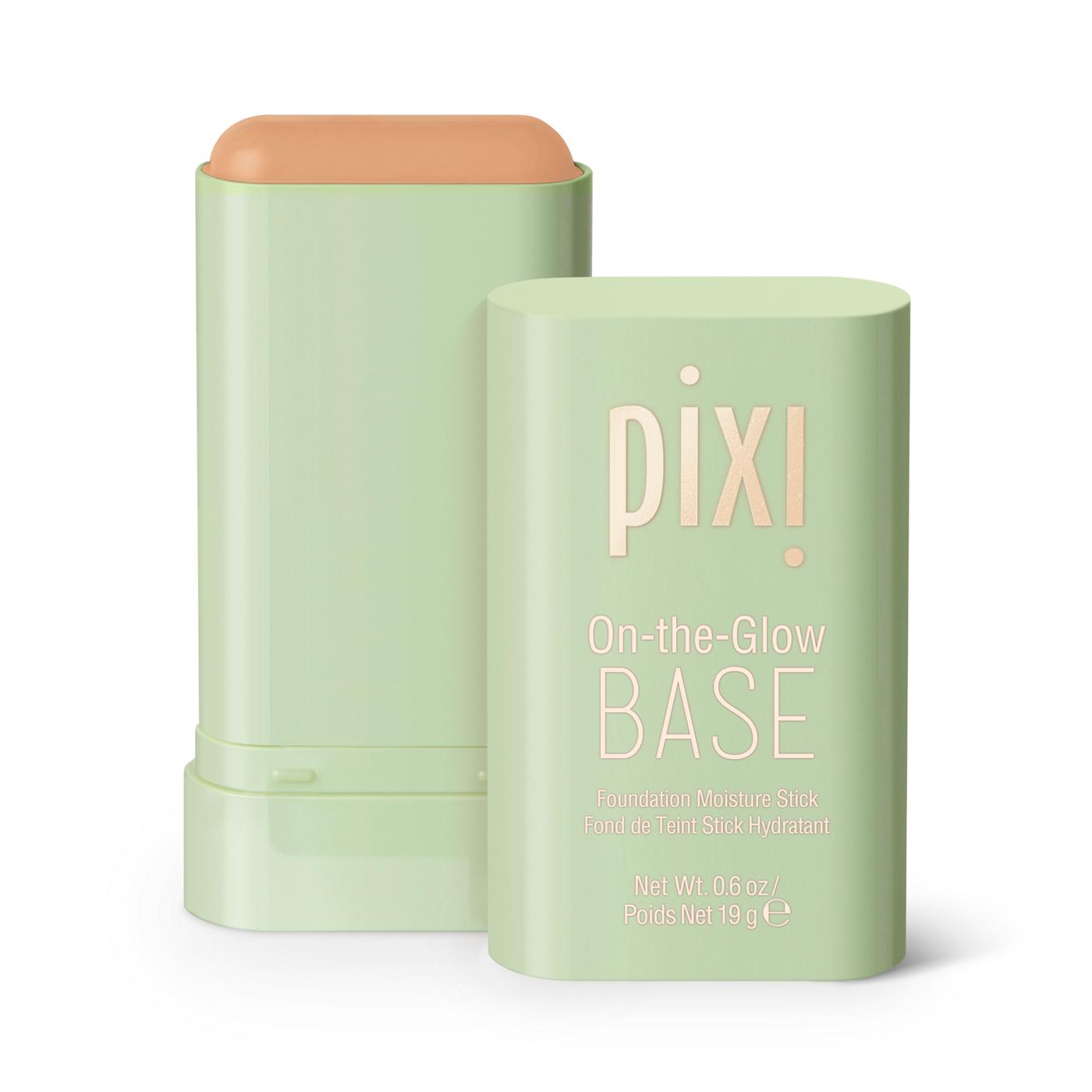 Achieve a healthy glow with the Pixi On-the-Glow Base Foundation Stick in Warm. This convenient stick foundation blends into the skin for a radiant, natural-looking finish. Featured in a stylish light green tube, the Warm shade is a medium, warm-toned beige for medium skin with golden undertones.• Features a creamy, blendable formula for a smooth application.• Provides buildable coverage for a natural, skin-like finish.• Delivers a radiant, dewy glow for a fresh complexion.