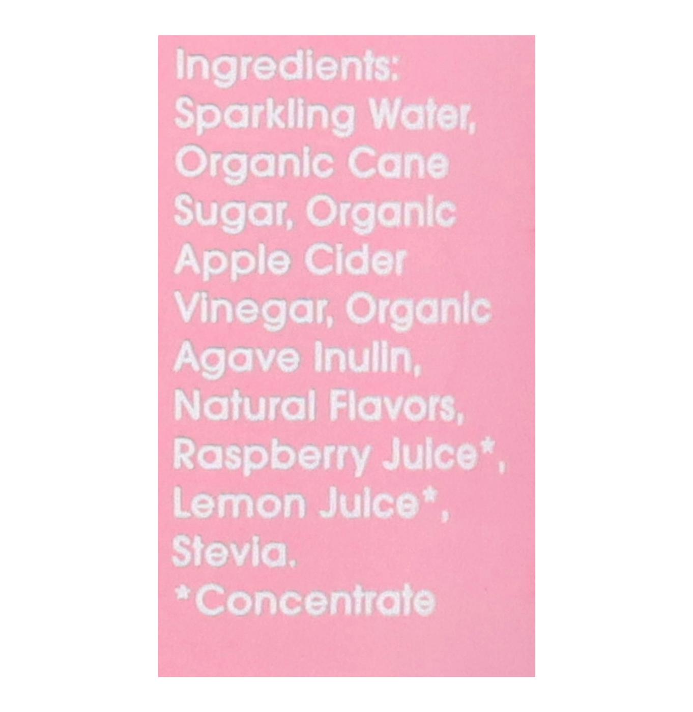 Sparkling Water, Organic Cane Sugar, Organic Apple Cider Vinegar, Organic Agave Inulin, Raspberry Juice (Concentrate), Natural Flavors, Lemon Juice (Concentrate), Stevia.