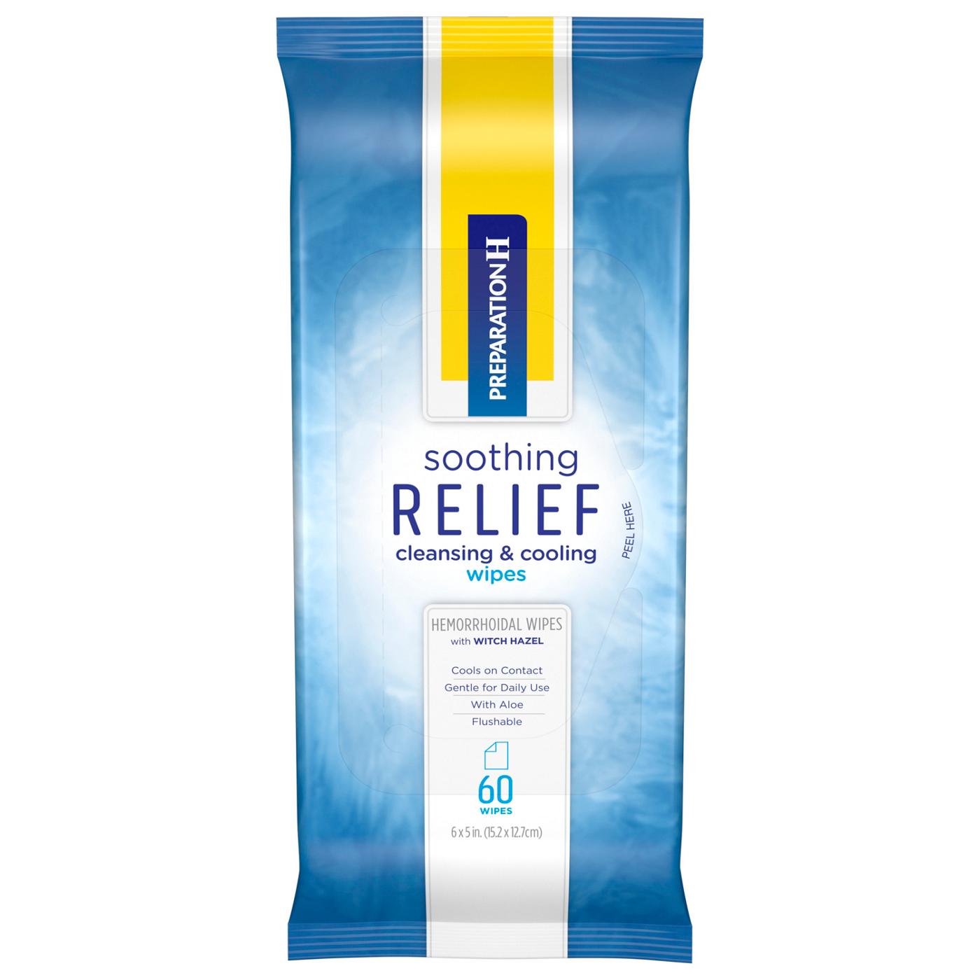 Preparation H Soothing Relief Cleansing & Cooling Wipes keep you clean, comfortable and irritation-free. These aloe and witch hazel wipes go beyond cleaning to soothe discomfort. These anal and vaginal wipes have a formula to calm burning and soothe itching on contact. Septic safe and biodegradable, Soothing Relief Cleansing & Cooling Wipes are flushable medicated wipes that are convenient and easy to use. Soothing Relief Cleansing & Cooling wipes are soap free, fragrance free and paraben free. Use these butt itch relief wipes to cleanse by wiping, patting or blotting up to six times a day. You can also use these wipes before applying a topical anal itching treatment such as Preparation H Soothing Relief Anti Itch Cream. Use as directed.• One pack of 60 Preparation H Soothing Relief Cleansing & Cooling Wipes, Aloe and Witch Hazel Wipes for Butt Itch Relief• Medicated wipes with witch hazel to calm burning and soothe itching on contact• Biodegradable, flushable and septic safe aloe wipes• Soap free, fragrance free and paraben free• Cleanse by wiping, patting or blotting with these flushable cleansing wipes up to six times a day• Use these anal wipes before applying a topical hemorrhoid itch treatment such as Preparation H Soothing Relief Anti Itch Cream• HSA and FSA eligible products