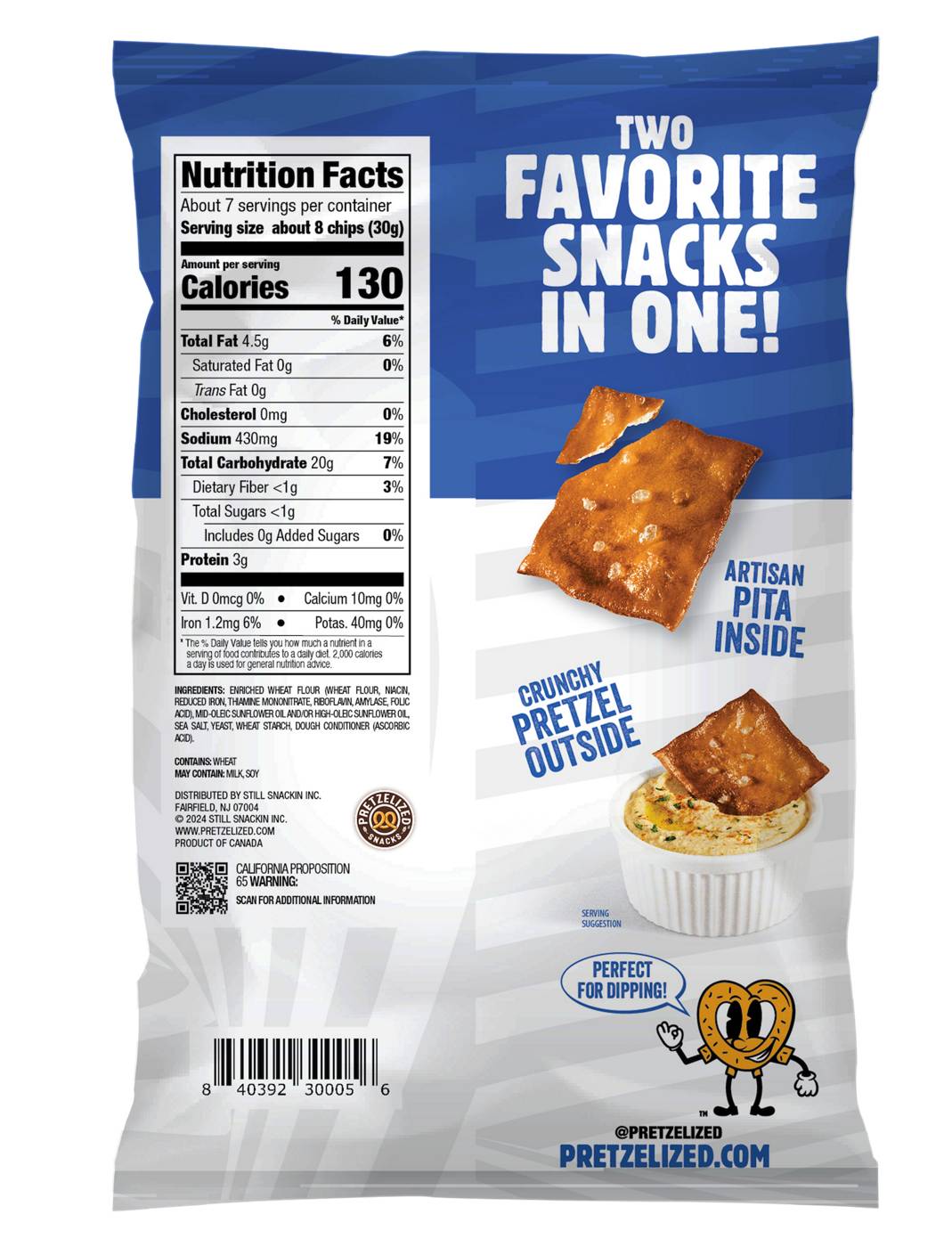 At PRETZELIZED, we're revolutionizing snacking by transforming classic snacks into pretzels. These Pretzel Pita Chips combine the snack ability of a pretzel with the versatility and sturdiness of a pita chip to create a one-of-a-kind snack that disrupts the status quo. Twice-baked to golden perfection, these artisan chips are an ideal pairing for your favorite dips, whether you're enjoying them solo or with others.