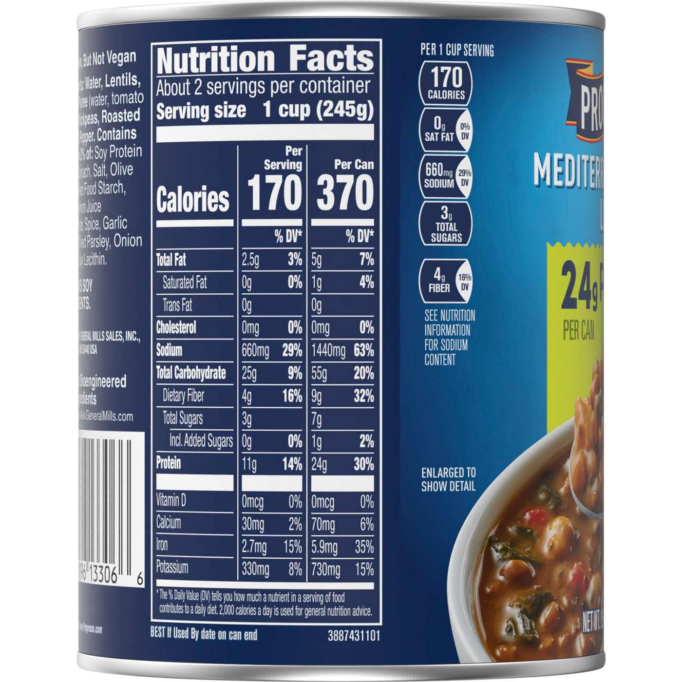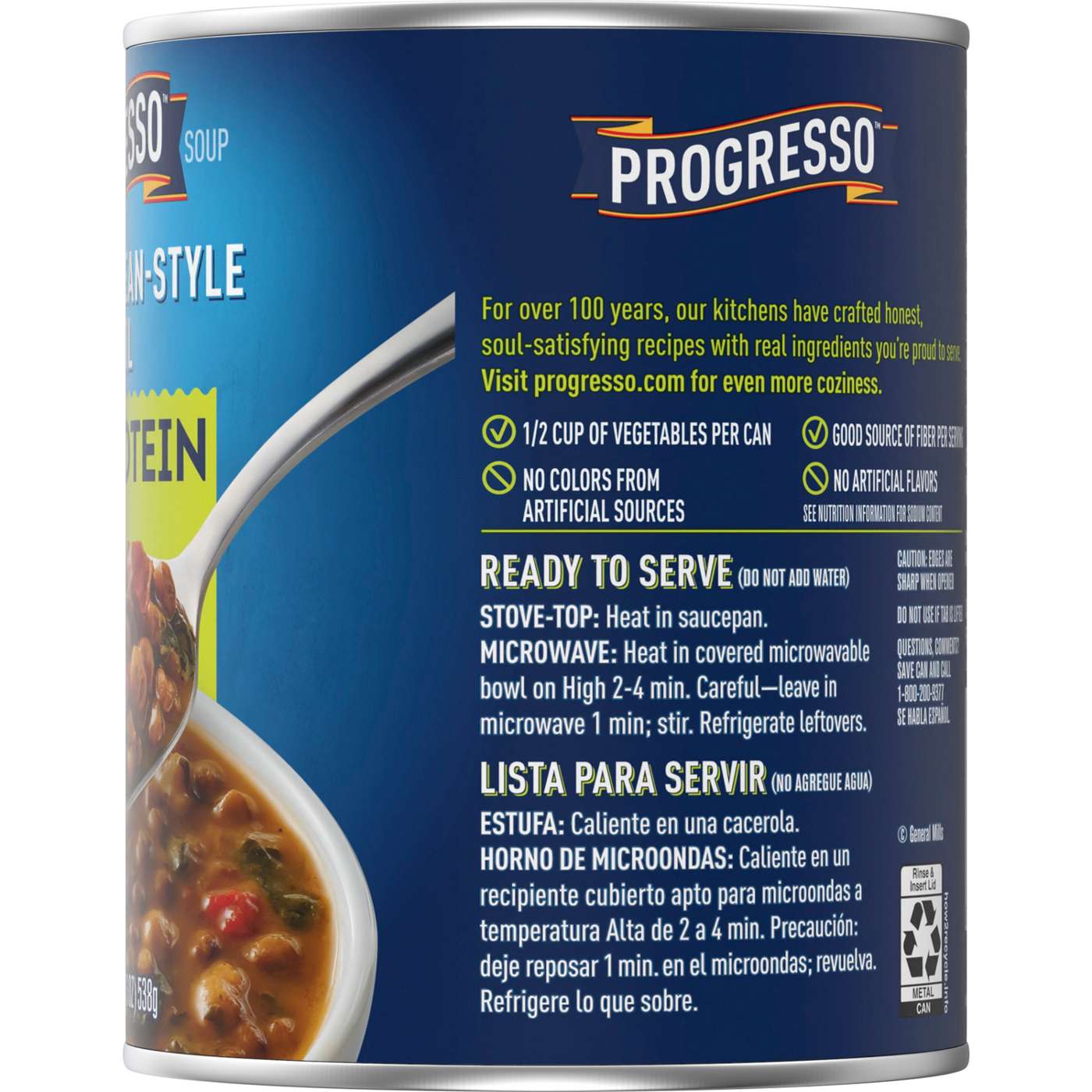 Savor every bite of Progresso Mediterranean-Style Lentil Protein Soup with 24g of protein per can. This cozy and delicious protein soup is vegetarian and includes a half cup of vegetables per can. You'll love the taste of lentils, chickpeas, and roasted red bell pepper in a tomato based broth, made without artificial flavors and no colors from artificial sources (see nutrition information for sodium content). Unlike instant ramen, Progresso soup is ready to serve; no need to add water. Enjoy a bowl of microwavable soup in minutes by following the easy directions on the can. Try it by itself, or alongside a cheesy toast or a salad as part of a tasty meal. This lentil soup provides a good source of fiber per serving. At Progresso, we're passionate about making great products. We've been creating soups ranging from Chicken Noodle to Tomato Basil and beyond for more than 100 years. And today, Progresso still uses quality ingredients for enticing flavor found in our line of canned soup products. Contains shelf-stable Progresso Mediterranean-Style Lentil Protein Soup, Vegetarian, 19 oz.MEDITERRANEAN-STYLE LENTIL SOUP: Savor the flavor of lentils, chickpeas, and roasted red bell pepper in a tomato based brothPROGRESSO PROTEIN SOUP: Canned soup with 24g protein per canQUALITY INGREDIENTS: No artificial flavors and no colors from artificial sources (see nutrition information for sodium content)QUICK AND EASY: Unlike instant ramen, Progresso soup is ready to serve, no need to add water; Contains a half cup of vegetables per canCONTAINS: shelf-stable Progresso Mediterranean-Style Lentil Protein Soup, Vegetarian, 19 oz