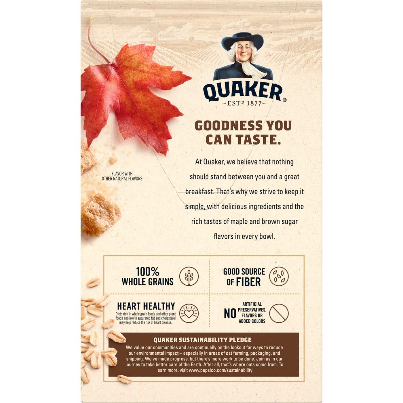 The wholesome goodness of Quaker Oats packed with the rich tastes of maple flavor and brown sugar Instant Oatmeal, and no artificial preservatives, or sweeteners. Just because you've got a busy day doesn't mean you don't deserve all the goodness Quaker has to offer.