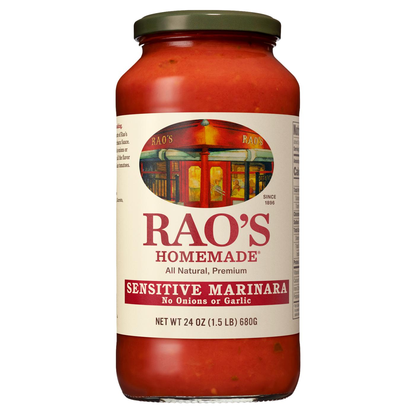 Rao's developed Sensitive Marinara Sauce for people who are sensitive to the flavor or the effects of onions or garlic. Our delicious sauce achieves full-bodied taste without the use of onions or garlic while keeping all the flavor of slow-simmered Italian tomatoes. Each batch of Rao’s Homemade Sensitive Marinara Sauce is slow-cooked in small batches with high quality ingredients. These wholesome ingredients blend 100% Italian tomatoes, olive oil, fresh carrots, fresh celery, salt, and fresh basil. Rao’s is proud to offer customers an all-natural sensitive marinara sauce that offers a truly traditional delicious homemade Italian flavor. Rao’s Sensitive Marinara Sauce recipe stays true to its classic Italian roots making it the perfect carb conscious marinara sauce that is Keto-friendly. Rao’s Sensitive Marinara has no added sugar* making it a great spaghetti sauce you’ll want in your pantry. This premium pasta sauce tastes delicious, and is made with the finest ingredients, without any tomato blends, tomato paste, water, starches, added colors, or sugar. Rao’s Homemade, originally born in New York, now brings authentic Italian flavor into your home. Rao’s Sensitive Marinara Sauce is a versatile carb conscious marinara sauce that offers truly traditional homemade Italian flavor, easily available anytime to pair with your preferred pasta, to use as an ingredient in your favorite recipe, or to accompany your favorite meatballs. *Not a low or reduced calorie food, see nutrition panel for further information on Sugar and Calorie content