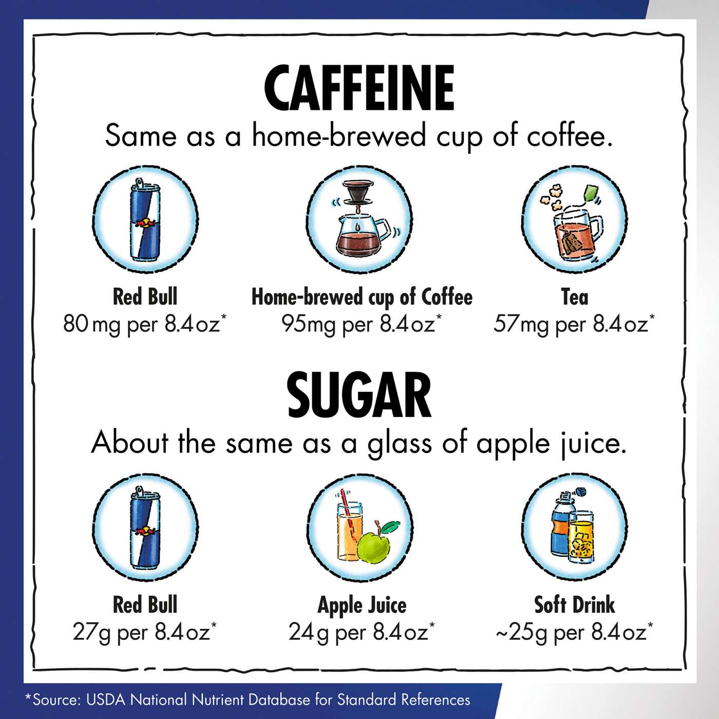 This Red Bull Coconut Edition features the taste of exotic Coconut and fruity Blueberry. This lightly carbonated beverage is enjoyed worldwide by fitness enthusiasts, athletes, gamers, students and travelers. A refreshing can of Red Bull makes an excellent partner for busy, active lifestyles. Each 12 fl oz can contains 114mg of caffeine per serving and 38g of sugar (comparable to sugar levels found in apple juice). It also includes Taurine, an amino acid naturally occurring in the human body, and B-group vitamins B6, B12, Niacin (B3) and Pantothenic Acid (B5). Available in 4-packs, 12-packs, 24-packs and Variety Packs. Comes in aluminum cans that can be recycled over and over. Always check can labels for most updated product nutritional and ingredient information. Calcium and sugars values declared on labels may vary slightly depending on production locations.