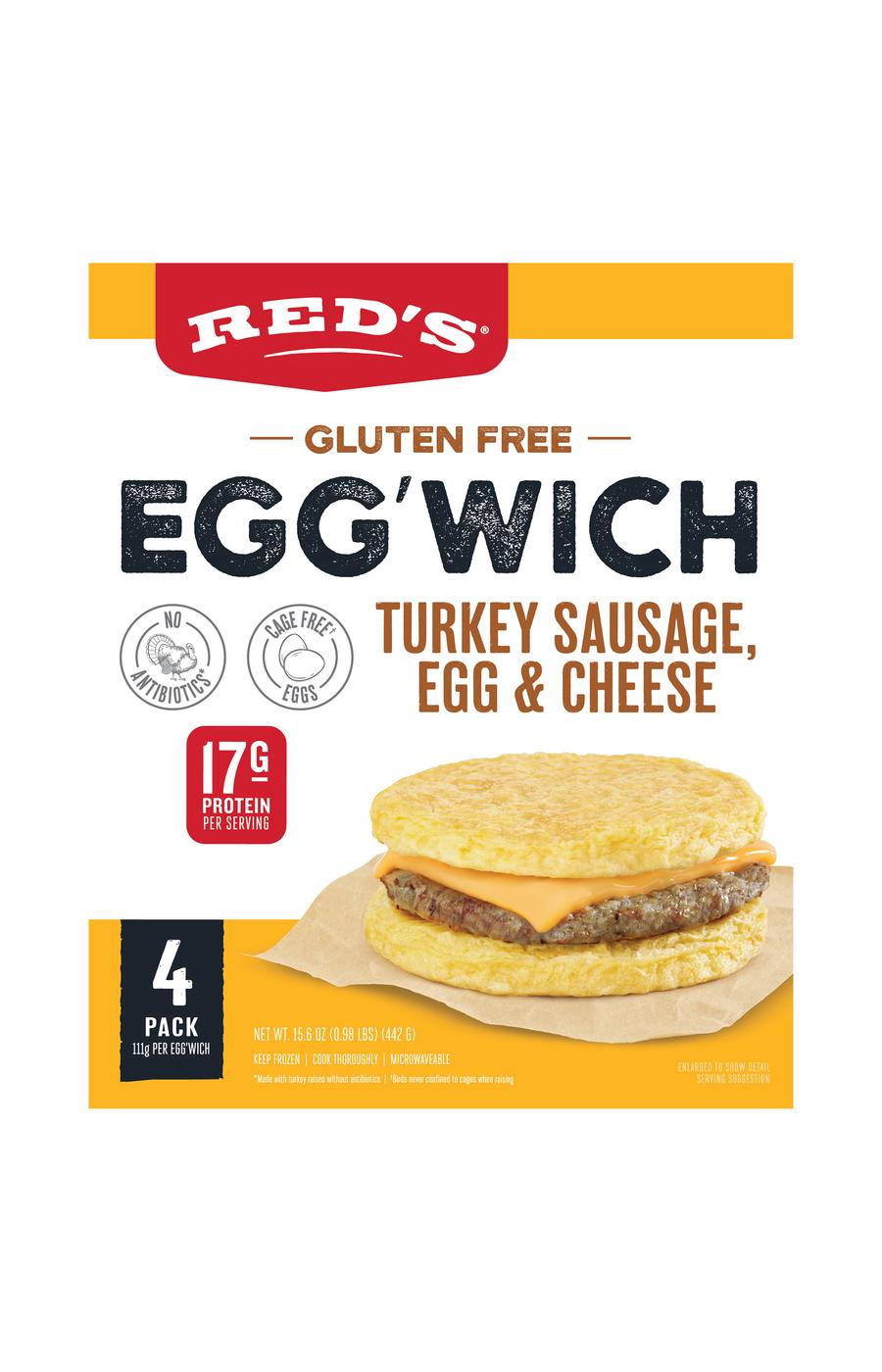 Red's Gluten Free 17g Protein Egg'wich Breakfast Sandwiches - Turkey Sausage