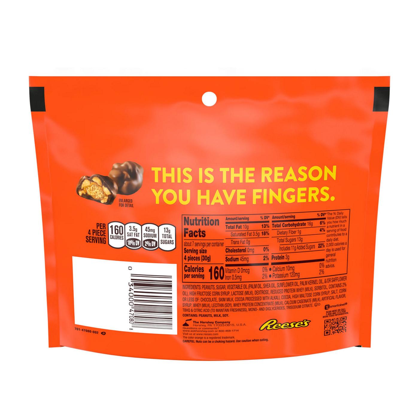 • Contains one (1) 7-ounce resealable bag of Reese's Cluster Bites Peanut Butter, Caramel, Peanuts and Chocolate Candy