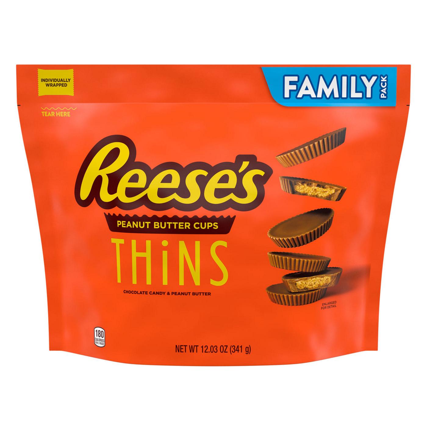 • Contains one (1) 12.03-ounce family pack of Reese's Thins Chocolate Peanut Butter Cups Candy