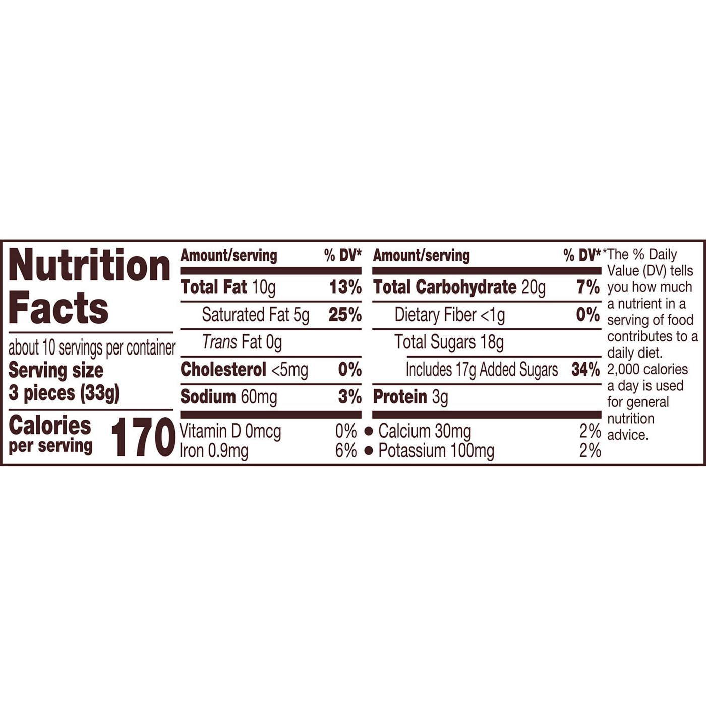 Sugar, Vegetable Oil (Palm Oil, Shea Oil, Sunflower Oil, Palm Kernel Oil, &/Or Safflower Oil), Peanuts, Lactose (Milk), Reduced Protein Whey (Milk), Chocolate, Skim Milk, Contains 2% Or Less Of: Dextrose, Cocoa, Cocoa Processed With Alkali, Hydrogenated Vegetable Oil (Palm Kernel Oil, Palm Oil), Lecithin (Soy), Salt, Vanillin (Artificial Flavor), Tbhq & Citric Acid (To Maintain Freshness).Allergens and safety warnings