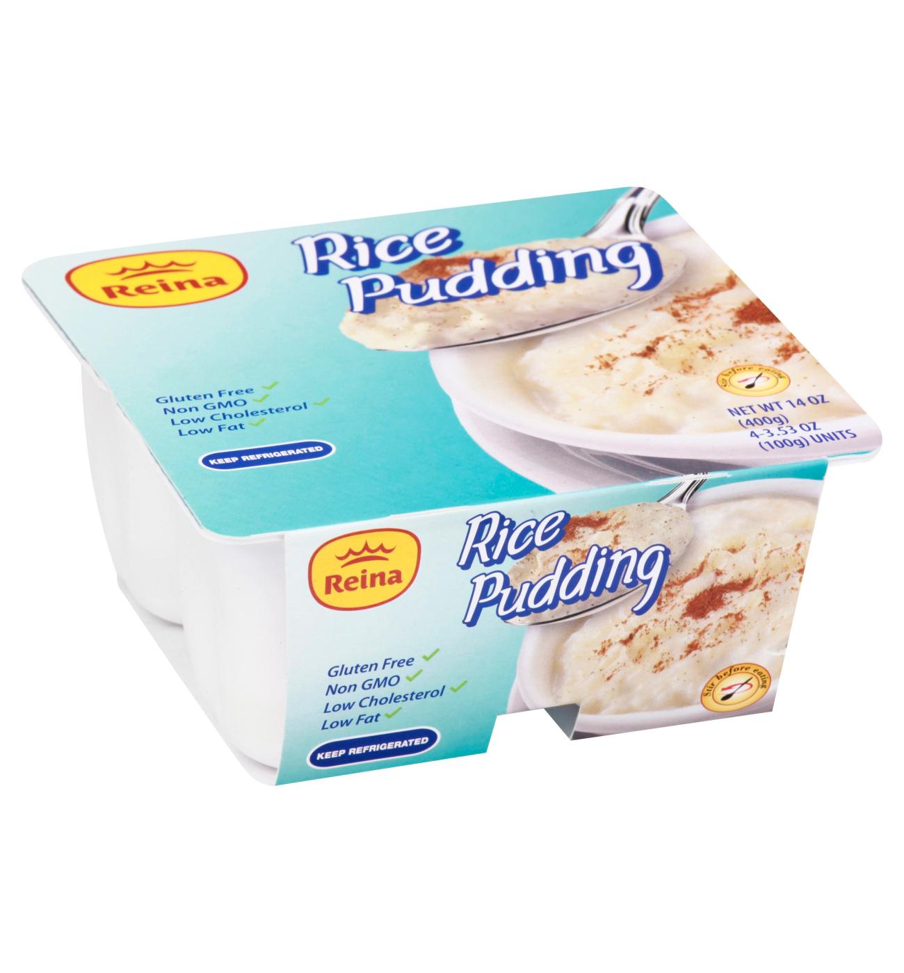 Enjoy the delicious homemade taste of rice pudding with this 4-pack from Reina. A gluten-free dessert, it's made with soft rice in cream and milk, with just a hint of cinnamon and lemon. And you can feel free to indulge anytime you like, since it's low in fat and cholesterol.