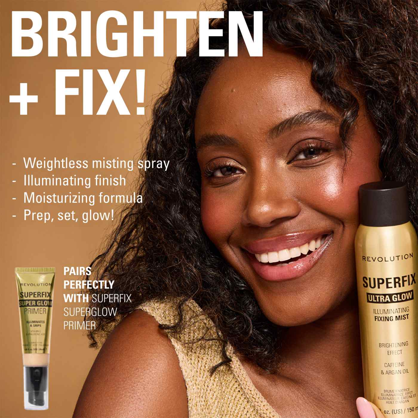 Your favorite superfix formula now in all-new radiant finish! The Revolution Superfix Glow Fixing Mist preps, sets and adds an all year-round summer glow to your base.