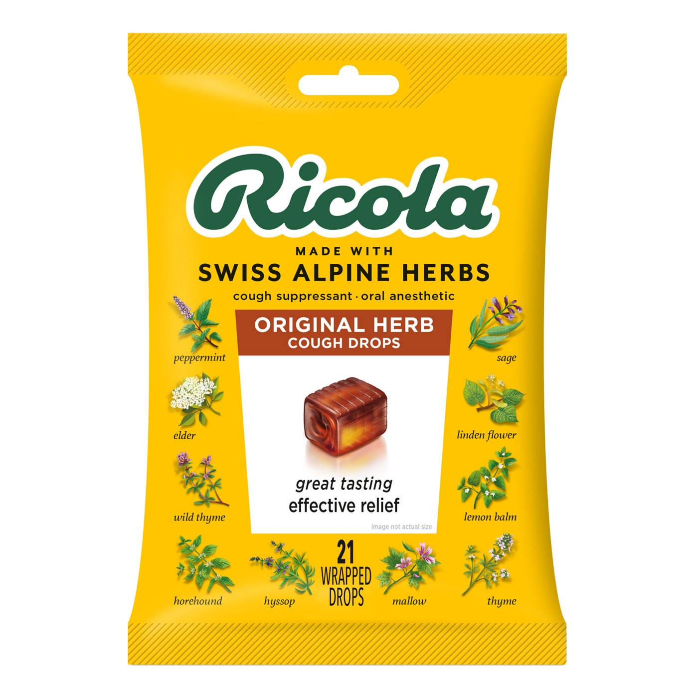 The original natural herb cough drops. Naturally soothing relief that lasts. Peppermint. Elder. Wild thyme. Horehound. Hyssop. Thyme. Mallow. Lemon balm. Linden flowers. Sage. Naturally Effective Relief: For over 80 years, Ricola has been making naturally effective products using the highest quality Swiss herbs for soothing relief of coughs and sore throats. Ricola Original Natural Herb Cough Drops are made today as they were in 1930 when Emil Richterich first developed his popular herbal drops in the Swiss village of Laufen. Natural menthol and Ricola's special 10-herb blend combine to make Ricola Original Natural Herb Cough Drops uniquely delicious and effective. The secret is Chruterchraft.