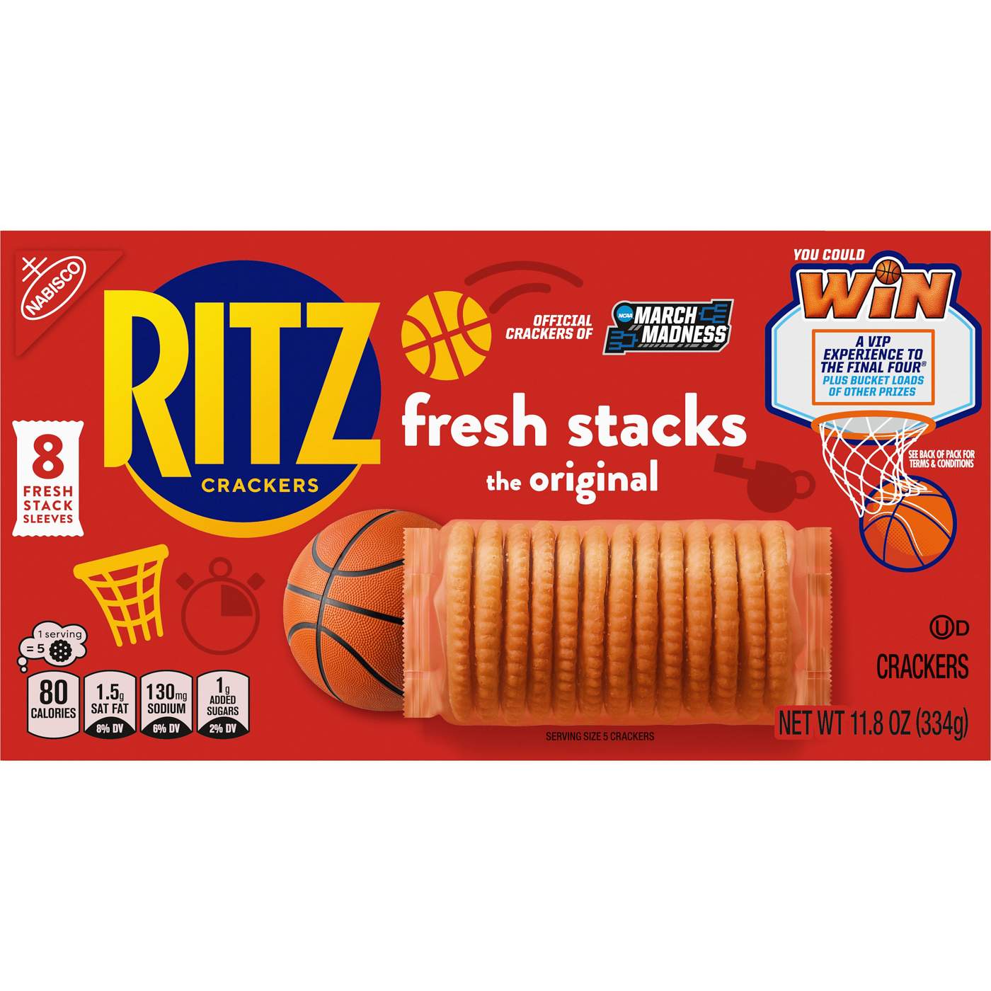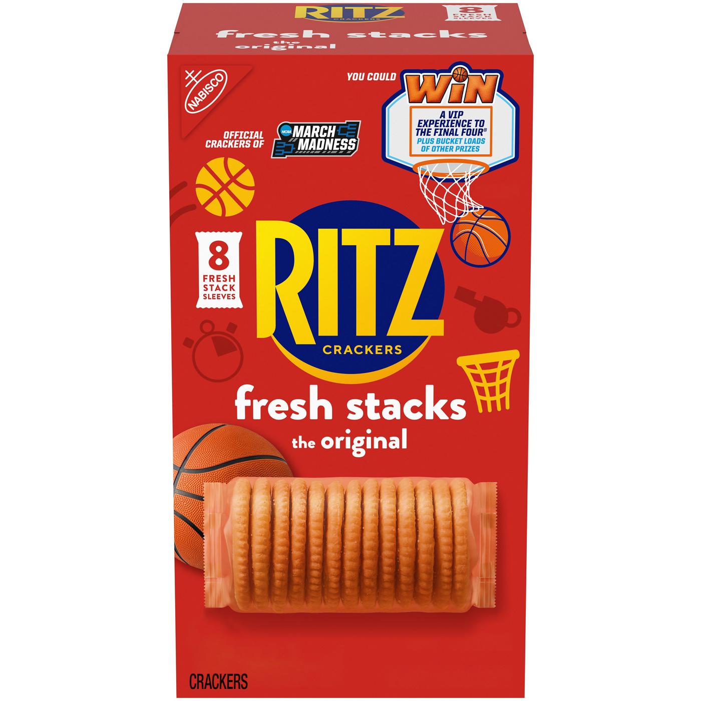 RITZ Fresh Stacks Original Crackers have a rich, buttery flavor that's perfect for pairing, topping or popping. No matter the occasion, these tasty round crackers make a great snack food, appetizer or quick meal. Keep RITZ snack crackers on your shelf of salty snacks for an easy anytime treat. Each 11.8 ounce box of RITZ Original Crackers contains eight individually wrapped cracker packs.