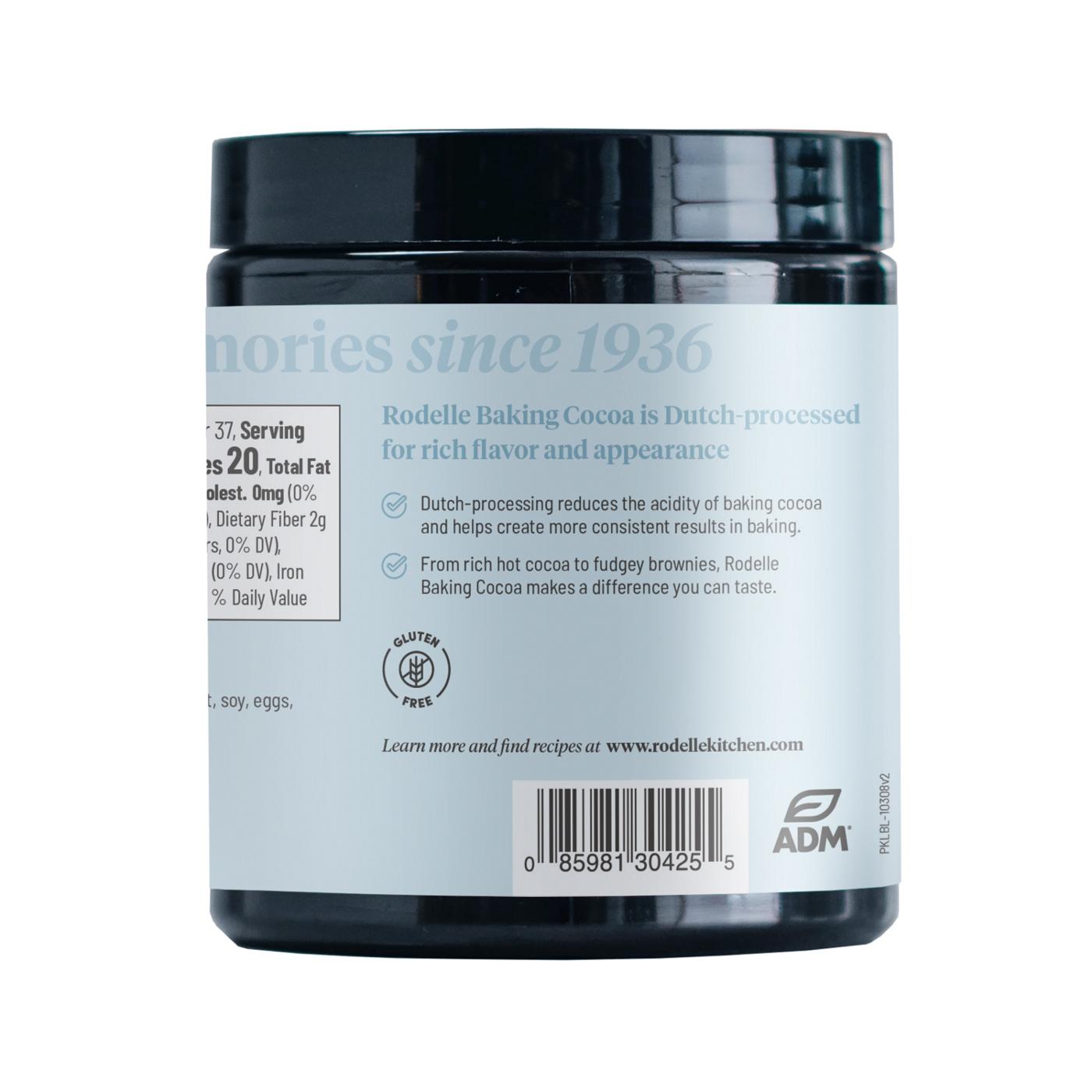 Dutch-processed baking cocoa from Rodelle offers superior performance in baking. It imparts a dark finish and rich, buttery flavor. Rodelle Gourmet Baking Cocoa is alkalized to reduce acidity and promote more consistent rising in baked goods - you'll see it is called for in many baking recipes. This cocoa enhances everything from hot cocoa to brownies, smoothies, and even savory recipes such as chili.> Gourmet Baking Cocoa, Dutch-processed for consistent results> Rich chocolate flavor> Makes a difference in your baking recipes> Gluten free and Kosher certified