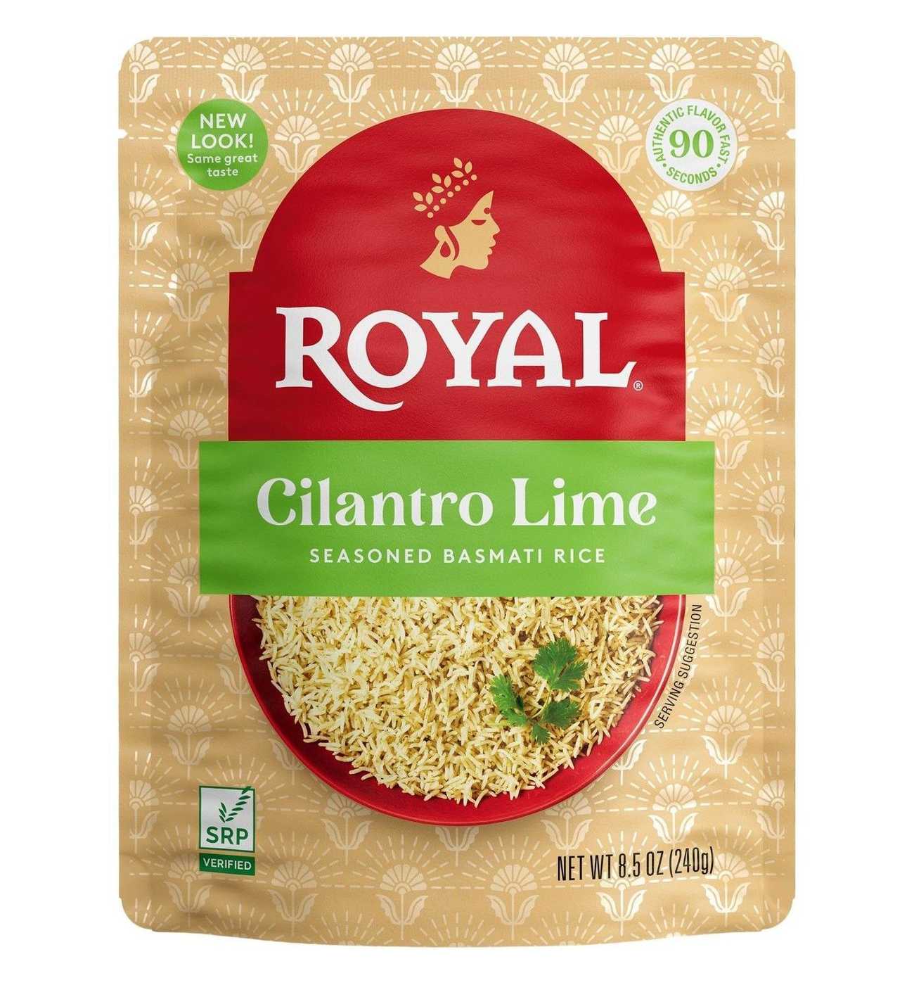 Aromatic Basmati Rice is transformed into a new exciting side dish with Royal Cilantro Lime Seasoned Basmati Rice. Our authentic, long-grained basmati rice, grown in the foothills of the Himalayan mountains, is blended with cilantro and a twist of lime to create a flavorful side to spruce up your chicken, fish or taco meal. No artificial flavors. Gluten free. Vegetarian. Non-GMO. No preservatives. A tradition of excellence.