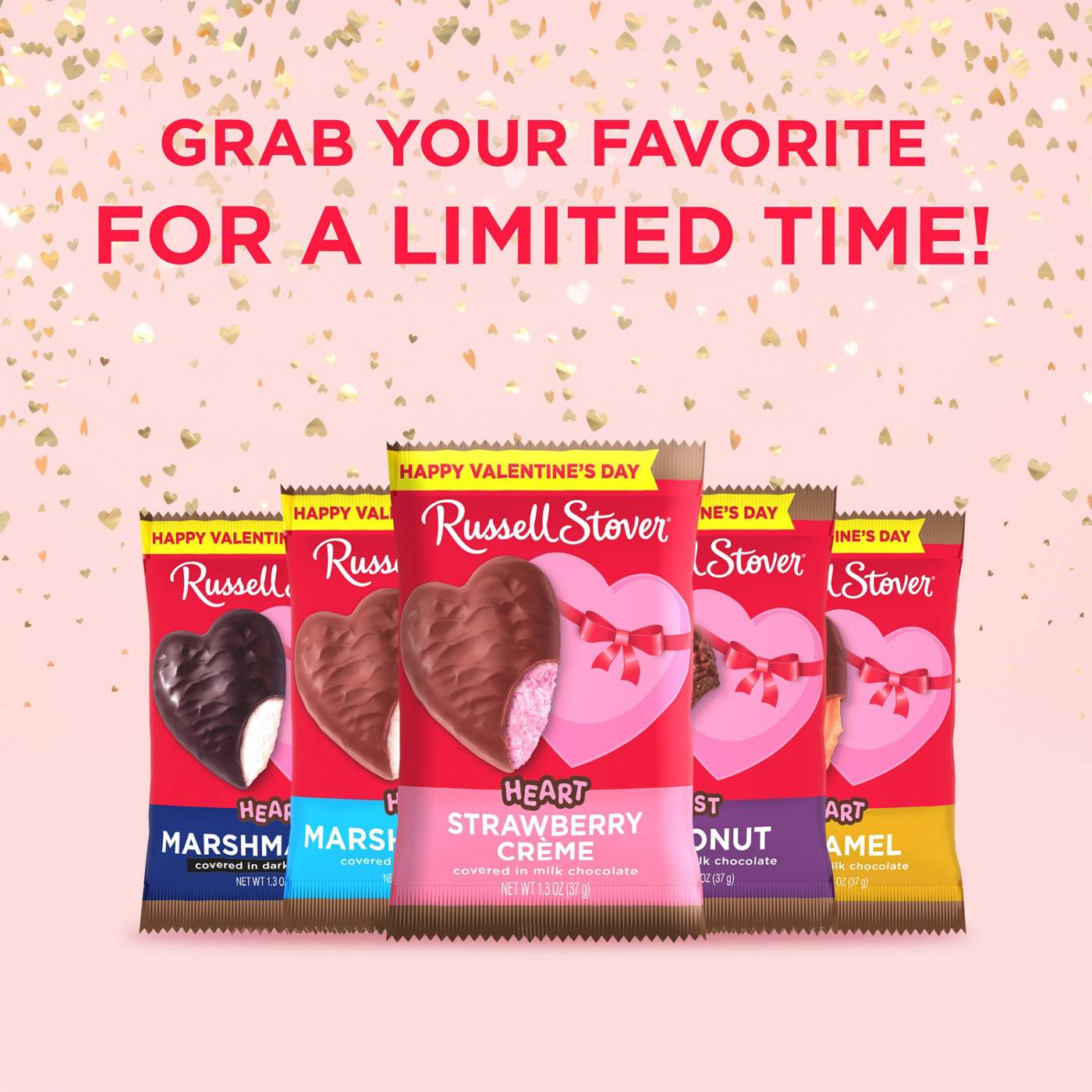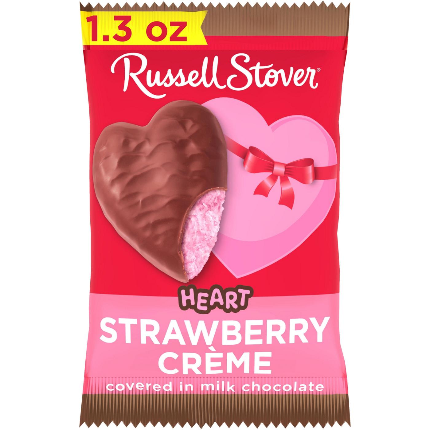 Embrace romance with our RUSSELL STOVER Valentine's Day Milk Chocolate Strawberry Crème Heart, 1.3 oz.! This sweet treat features a fluffy, strawberry crème center surrounded by our delicious milk chocolate. Each heart is individually wrapped, making it perfect for sharing with friends and family, class parties or treating yourself! Made with the finest ingredients, RUSSELL STOVER has been an American-made classic since 1923. We are proud to be part of your Valentine's Day candy traditions and everyday indulgences.