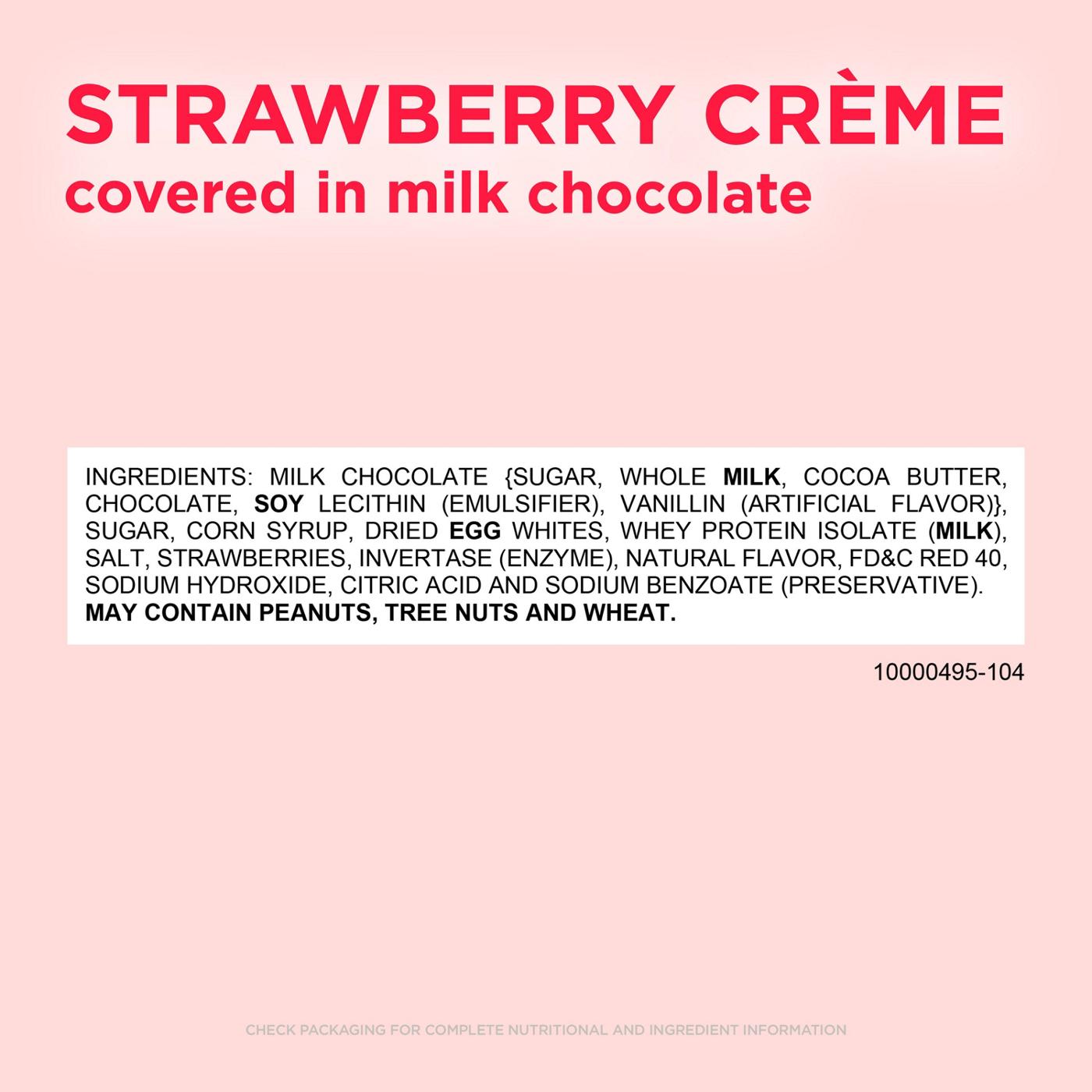 MILK CHOCOLATE {SUGAR, WHOLE MILK, COCOA BUTTER, CHOCOLATE, SOY LECITHIN (EMULSIFIER), VANILLIN (ARTIFICIAL FLAVOR)}, SUGAR, CORN SYRUP, DRIED EGG WHITES, WHEY PROTEIN ISOLATE (MILK), SALT, STRAWBERRIES, INVERTASE (ENZYME), NATURAL FLAVOR, FD&C RED 40, SODIUM HYDROXIDE, CITRIC ACID AND SODIUM BENZOATE (PRESERVATIVE).Allergens and safety warnings