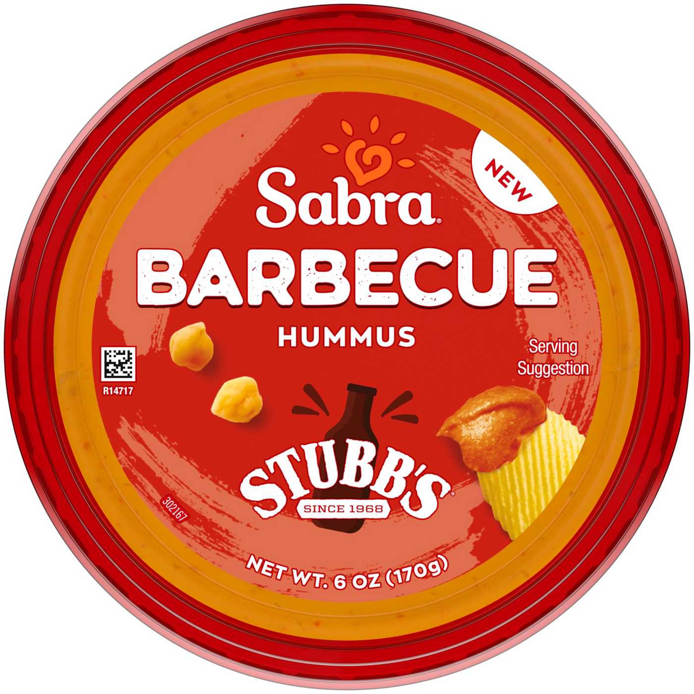 Sabra Barbecue Hummus Dip, inspired by Stubb's BBQ sauce, the legendary hickory smoke flavor meets smooth texture in this unique hummus experience. It’s a perfect blend of sweet, smoky, tangy and a touch of heat! This dairy-free, kosher and gluten-free hummus is great for spread, snacks & lunches.