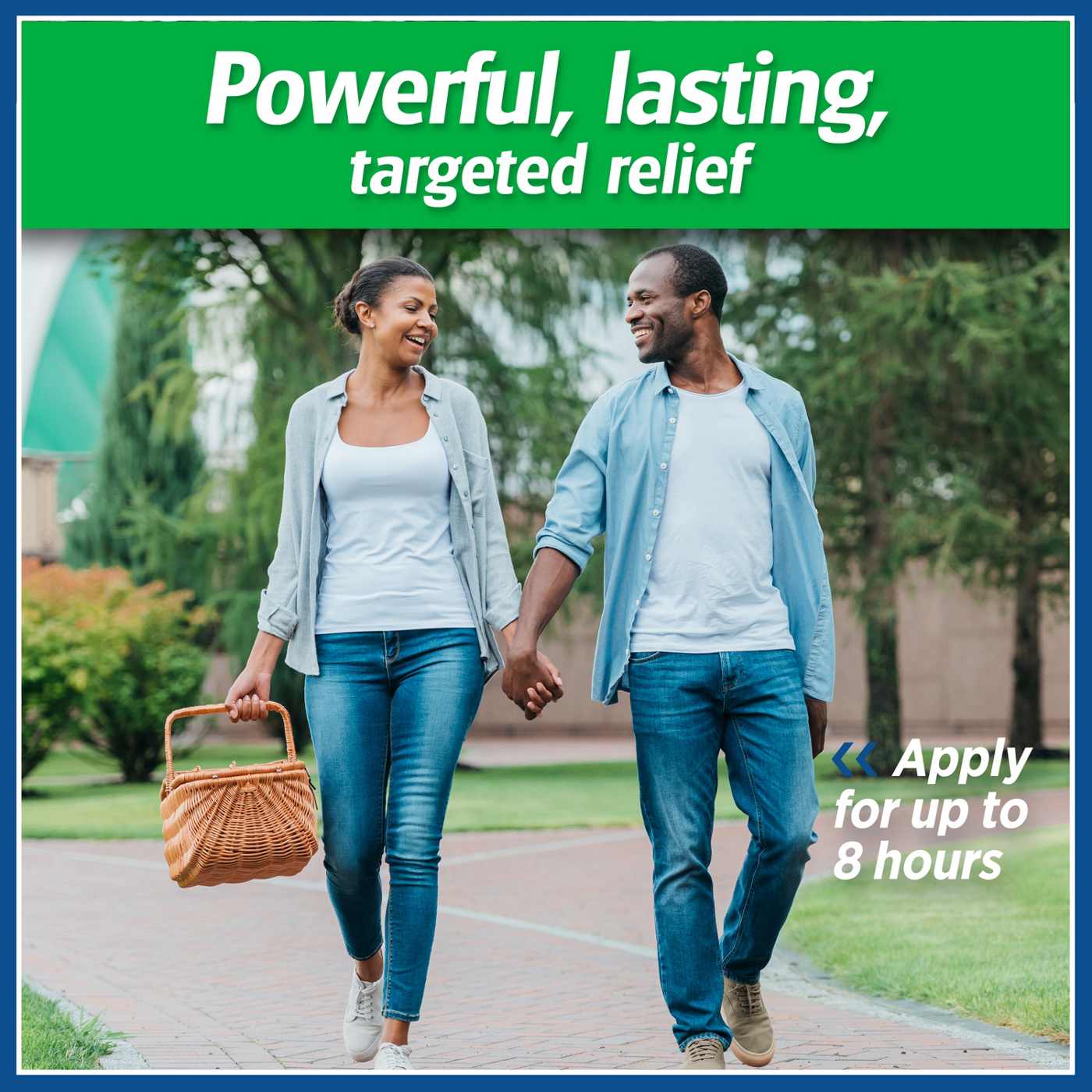 For temporary relief of pain. Patch contours to your body, adheres as you move, bend, twist, or flex. Stretchable. Thin Fabric. Strong Adhesion