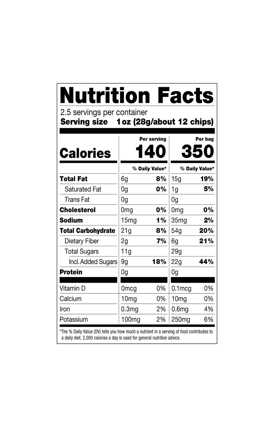 Serving Size1.00 bag- Amount Per ServingCalories350