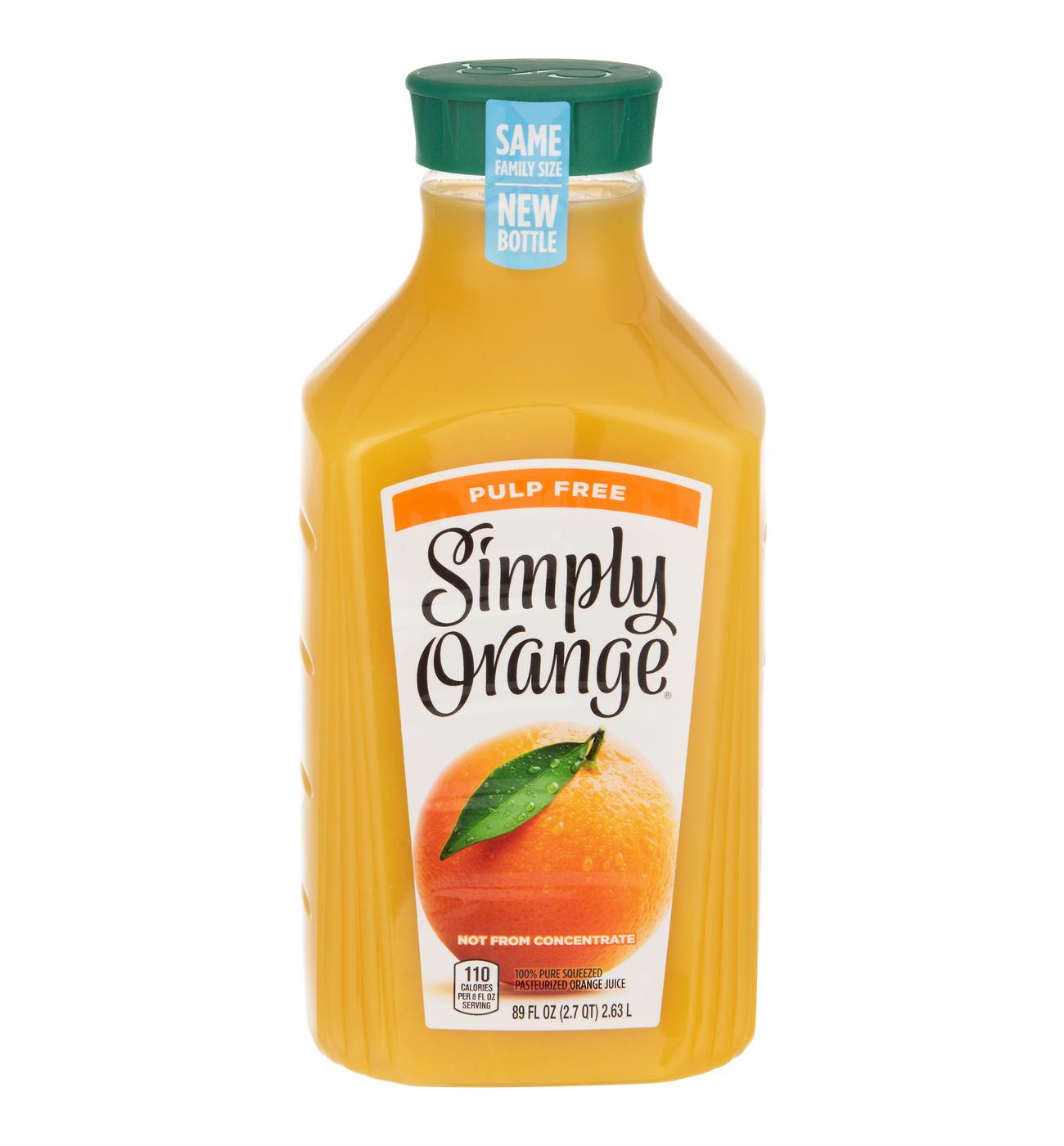 For Simply Orange Pulp Free, we carefully select real, ripe oranges and turn them into a deliciously simple pulp-free orange juice. Not from concentrate for a deliciously fresh-squeezed taste. Simple ingredients and the Simply “Fresh Taste Guarantee” make for a refreshing non-GMO orange juice you can enjoy with breakfast, lunch or any time in between. Simply Orange is 100% pure-squeezed pasteurized orange juice—everything you love with the addition of calcium and vitamin D alongside the naturally occurring vitamin C. Simply products start with great-tasting fruit and end with great-tasting fruit juices, fruit drinks and fruit smoothies. That’s because we believe the best things in life are made simply. And we hold everything, from Simply Fruit Punch to Simply Lemonade, to the same high standard with our “Fresh Taste Guarantee.” Whatever juice you’re looking for, the choice is simple. With Simply Orange Pulp Free, the difference is clear. Because with Simply, there’s nothing to hide!