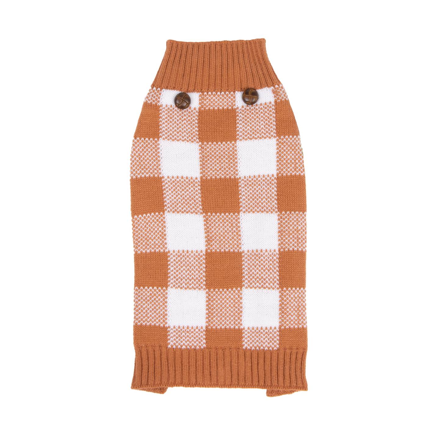 Simply Dog Orange Buffalo Check Sweater - Medium
