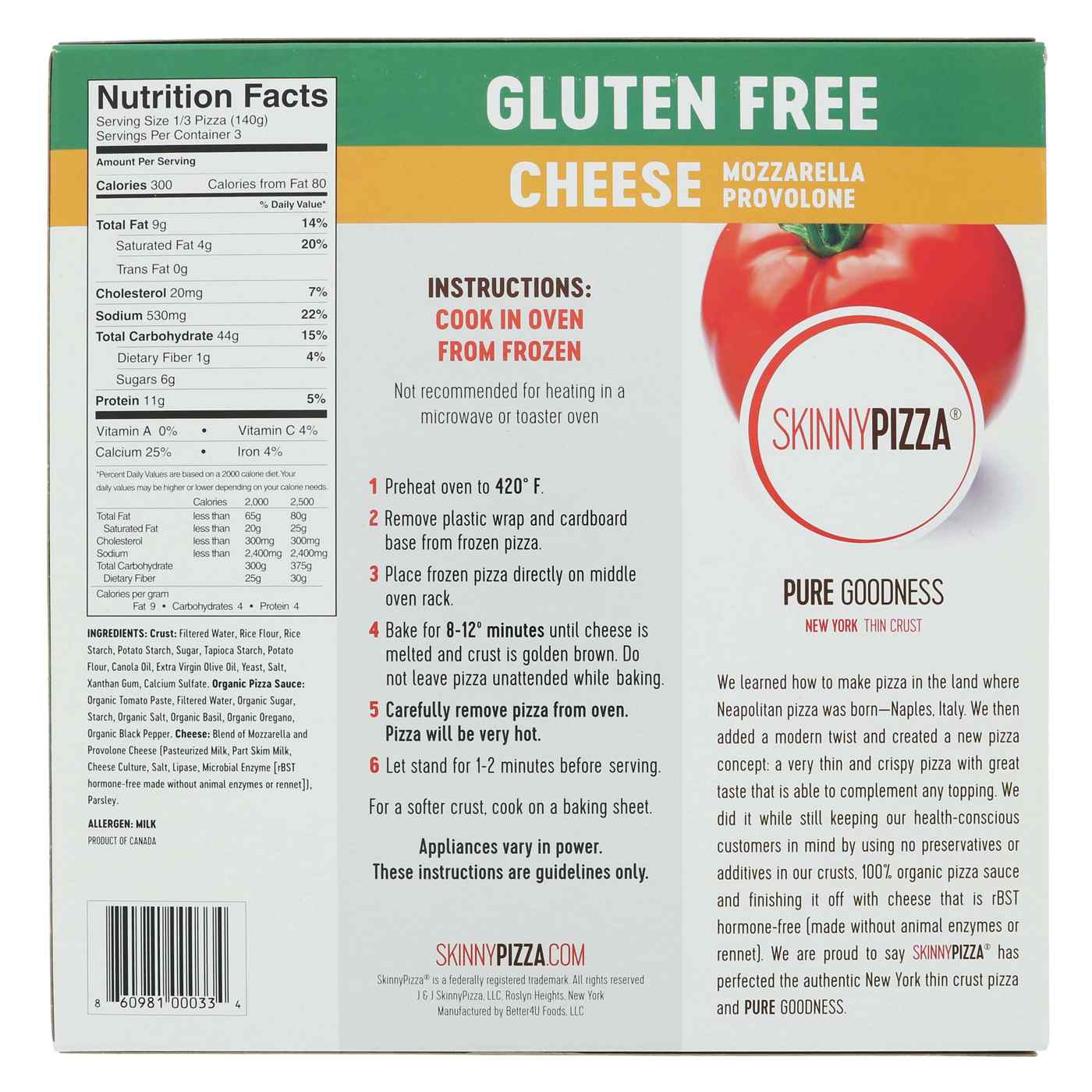 Skinny Pizza All Natural Cheese Gluten Free Pizza