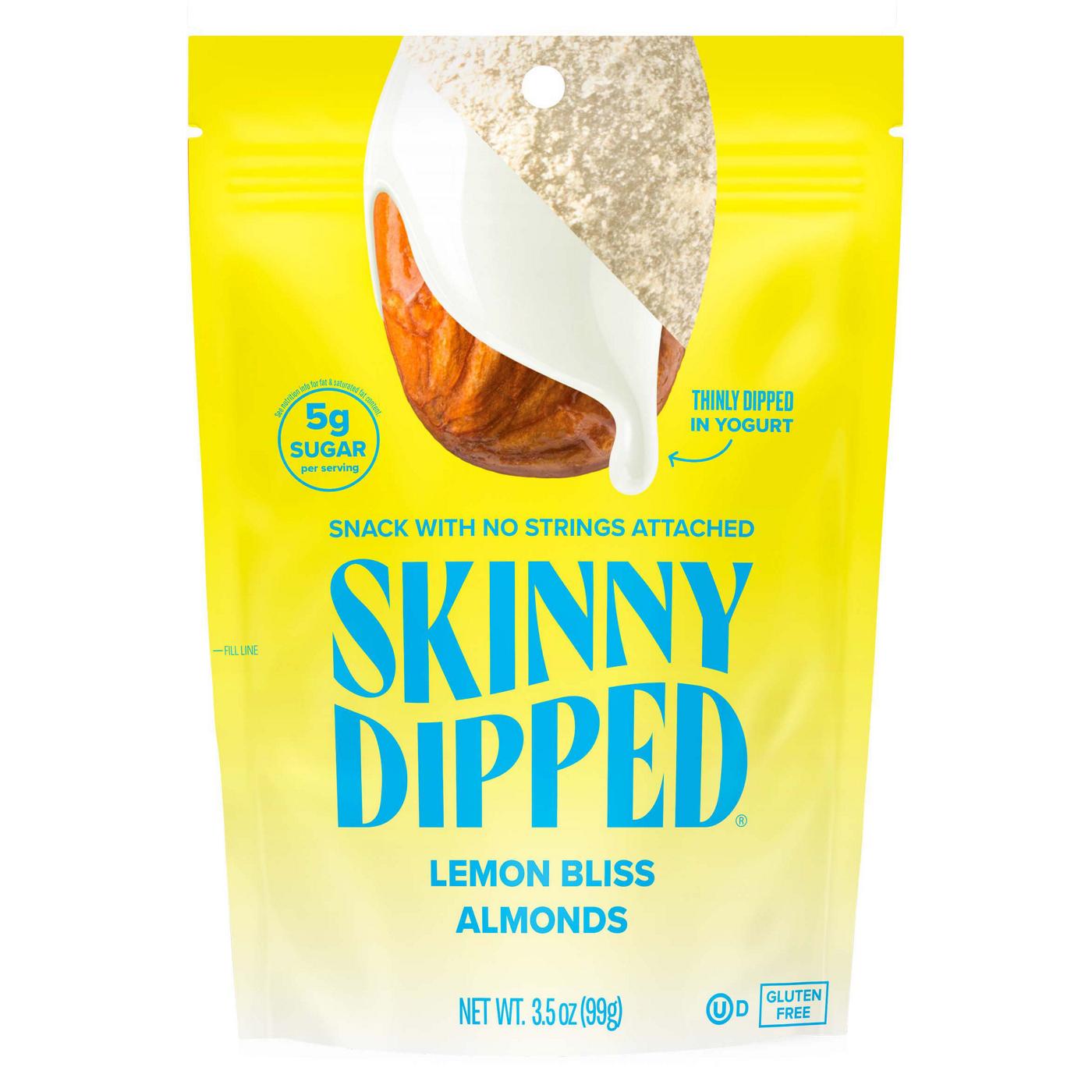 Tastes like summer in a bag. Whole almonds SkinnyDipped in a thin layer of lightly sweetened yogurt coating finished with a squeeze of lemon. Get ready to bliss out.