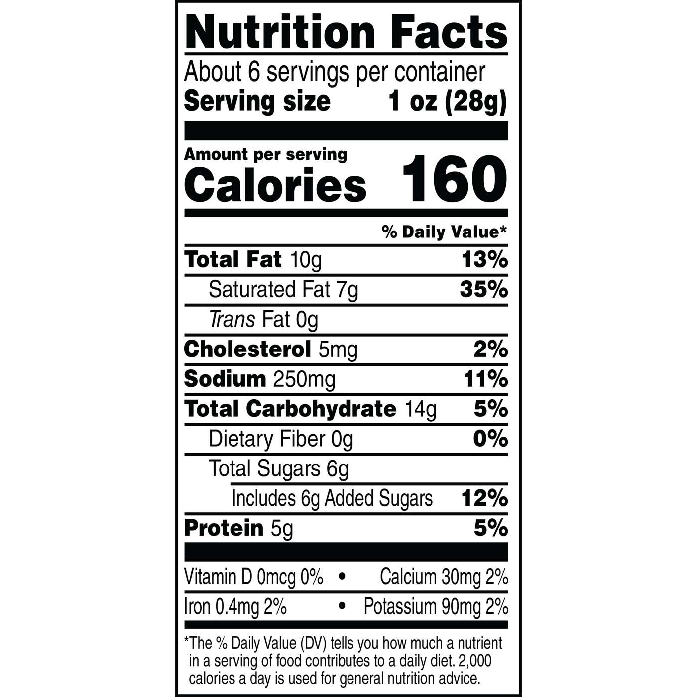 Serving Size1.00 Ounce- Amount Per ServingCalories160