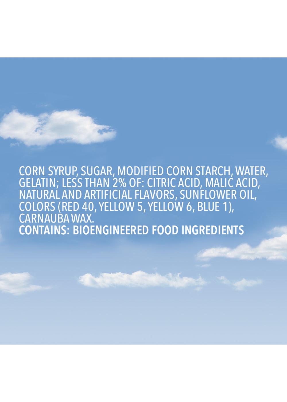 Corn Syrup, Sugar, Modified Corn Starch, Water, Gelatin; Less Than 2% Of: Citric Acid, Malic Acid, Natural And Artificial Flavors, Sunflower Oil, Colors (Red 40, Yellow 5, Yellow 6, Blue 1), Carnauba Wax.