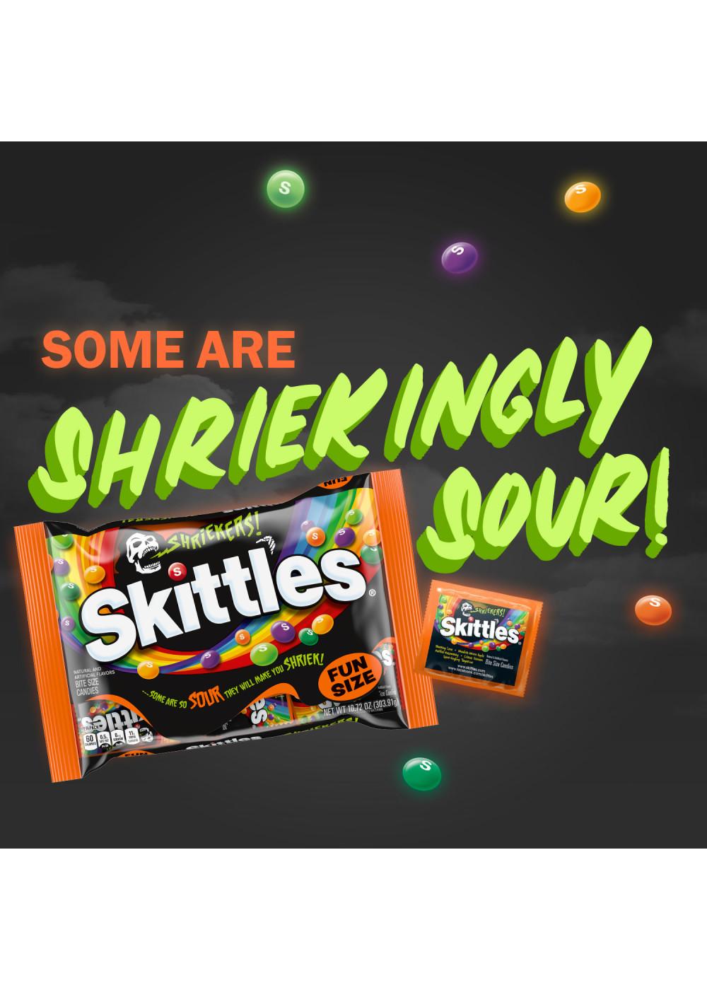 SHRIEK-or-Treat! Grab some SKITTLES Shriekers Fun Size Halloween Candy this Halloween, but don't say we didn't warn you! It's a wild ride of sour fun! Add to your cart today.