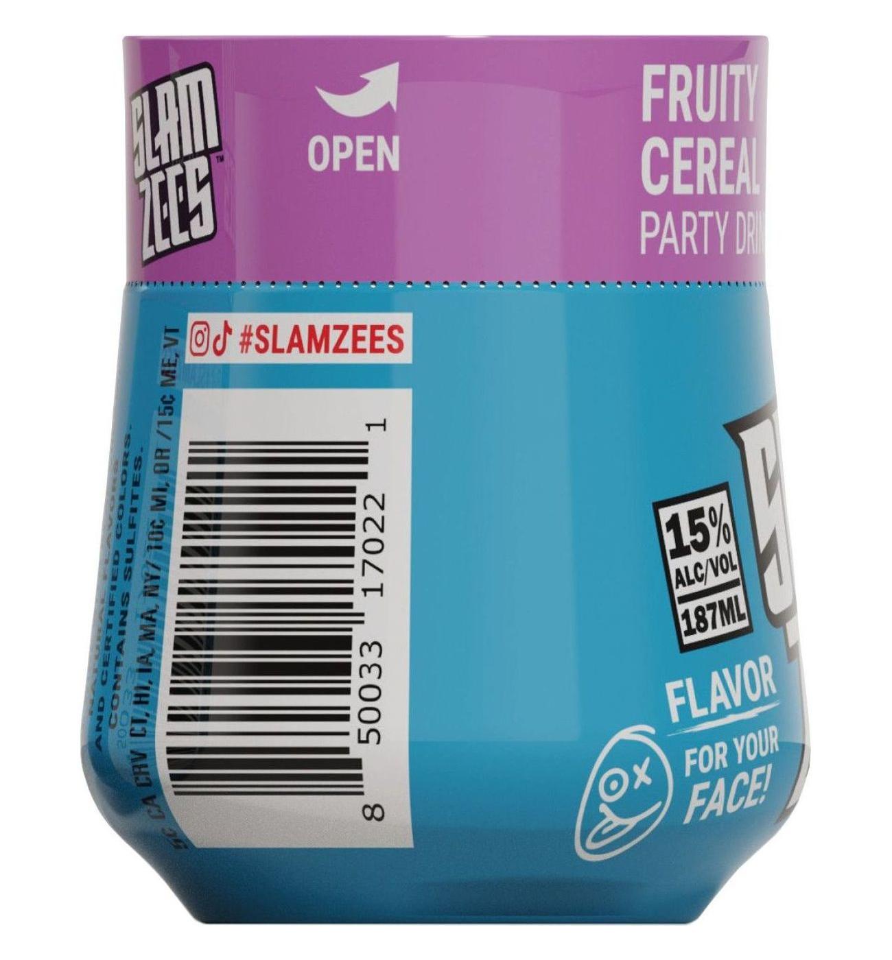 SLAMZEES Fruity Cereal comes ready to drink. Your favorite taste of childhood is all grown up! From a final slurp at breakfast to the first sip of the evening – cereal milk always tastes oh so sweet going down. Embrace the nostalgia and enjoy some flavor for your face! Resealable. Alc 15% by vol. Made in Texas.