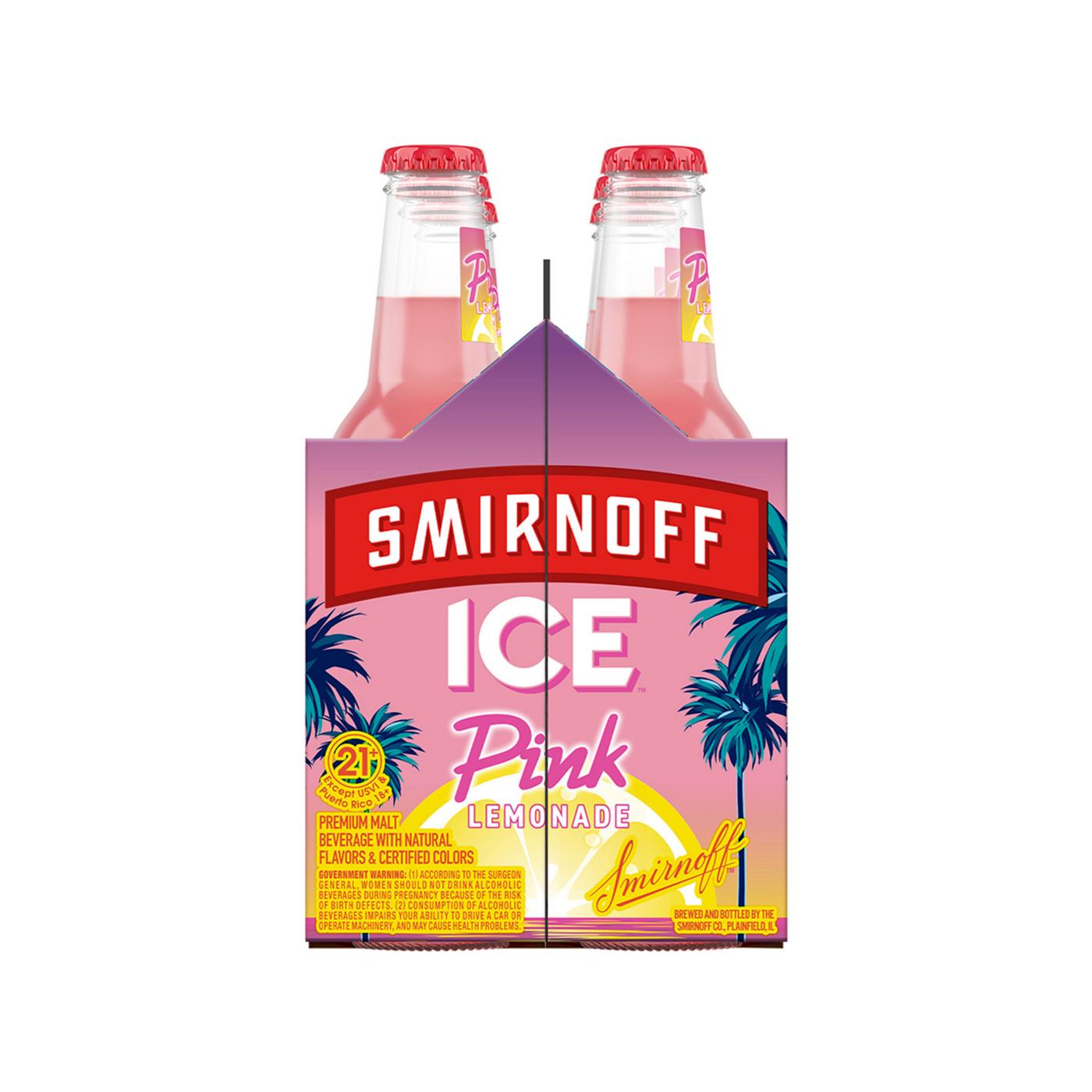 Smirnoff Ice Pink Lemonade is a refreshing combination of tart juicy lemon notes and sweet red berries, for a flavor you know and love. This carefully balanced beverage is delicious enough to elevate your best moments of summer (like when the sunsets are so good, they’re pink) and all year round.Enjoy chilled and drink responsibly. Smirnoff Ice Pink Lemonade has a 4. 5% ABV.One of the most popular malt beverages in the nation, Smirnoff Ice has been a staple of get-togethers and parties since 1999.• Smirnoff Ice Pink Lemonade is a premium flavored malt beverage with a refreshing combination of tart juicy lemon notes and sweet red berries.• Made by the Smirnoff brand you know and love, Smirnoff Ice isnt made with vodka, but made like traditional beers with malt.• Chill and enjoy straight from the bottle or in a glass over ice.• Smirnoff Ice Pink Lemonade elevates your best moments of summer (like when the sunsets are so good, theyre pink) and all year round.• One of the most popular malt beverages in the nation, Smirnoff Ice has been a staple of get-togethers and parties since 1999.