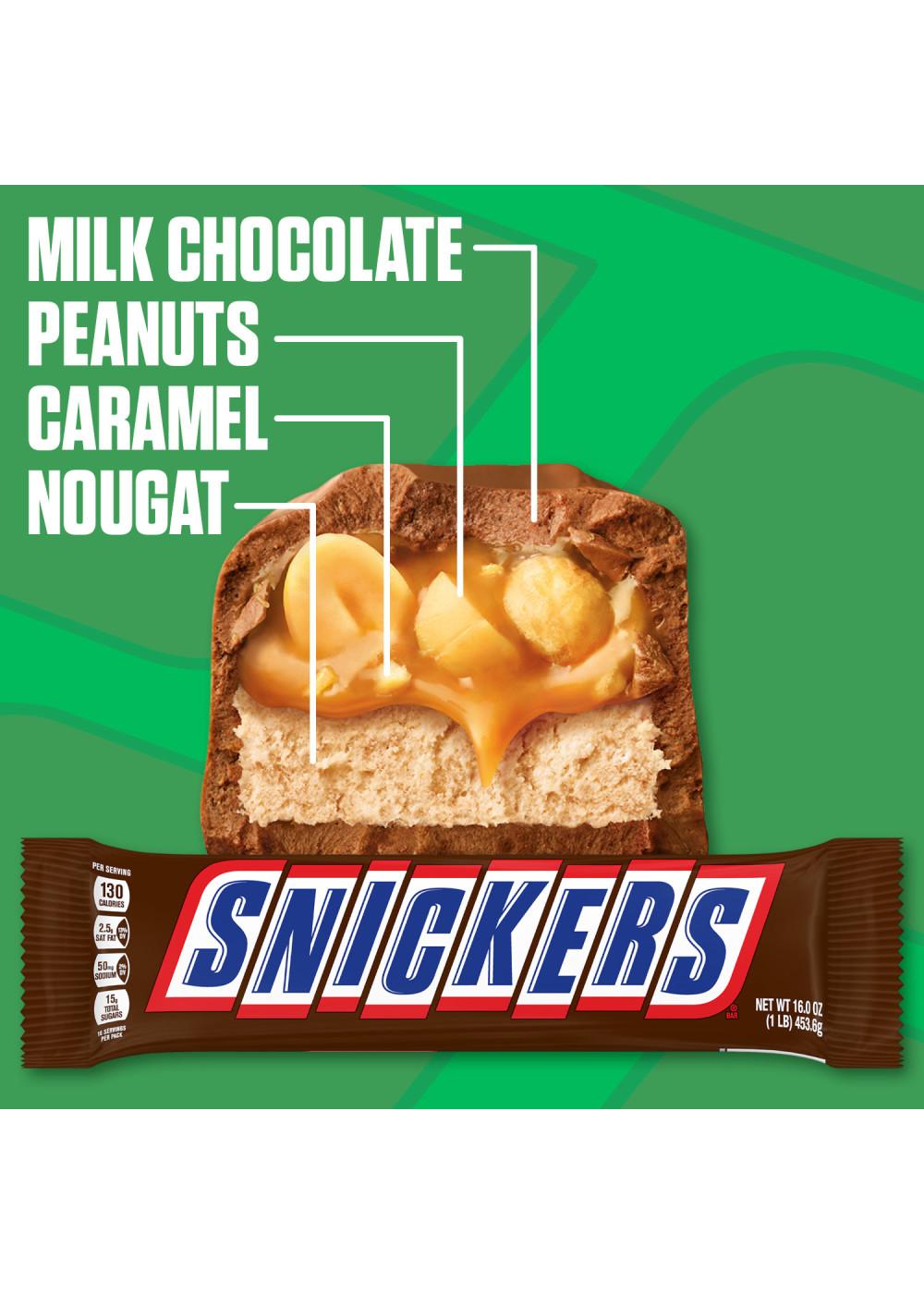 •Grab your closest friends and family to share this giant, 1-lb. SNICKERS Chocolate Bar